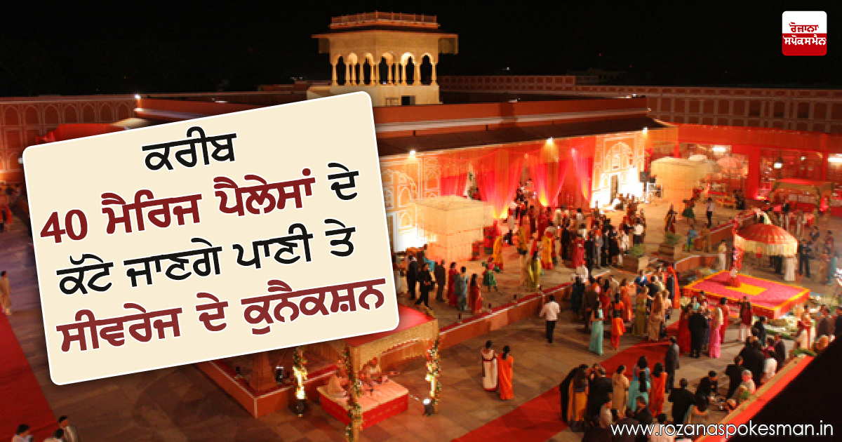 ਜਲੰਧਰ ਨਗਰ ਨਿਗਮ ਵੱਲੋਂ ਕੀਤੇ ਗਏ ਸਰਵੇ ਅਨੁਸਾਰ ਸ਼ਹਿਰ ਦੀ ਹੱਦ 'ਚ 55 ਮੈਰਿਜ ਪੈਲੇਸ ਹਨ। ਇਨ੍ਹਾਂ 'ਚੋਂ 6 ਮੈਰਿਜ ਪੈਲੇਸ ਹੁਣ ਬੰਦ ਹੋ ਚੁੱਕੇ ਹਨ ਅਤੇ 18 ਮੈਰਿਜ ਪੈਲੇਸਾਂ ਦੇ ਮਾਲਕਾਂ ਨੇ ਪਾਲਿਸੀ ਅਧੀਨ ਅਪਲਾਈ ਹੀ ਨਹੀਂ ਕੀਤਾ। 16 ਮੈਰਿਜ ਪੈਲੇਸ ਅਜਿਹੇ ਹਨ ਜੋ ਪਾਲਿਸੀ ਅਧੀਨ ਰੈਗੂਲਰ ਨਹੀਂ ਹੋ ਸਕਦੇ। 8 ਮੈਰਿਜ ਪੈਲੇਸ ਨਿਯਮ ਅਨੁਸਾਰ ਚੱਲ ਰਹੇ ਹਨ ਅਤੇ ਕੁਝ ਮੈਰਿਜ ਪੈਲੇਸ ਵਾਲਿਆਂ ਨੇ ਰੈਗੁਲਰ ਸਬੰਧੀ ਅਰਜ਼ੀਆਂ ਦਿੱਤੀਆਂ ਹੋਈਆਂ ਹਨ। ਪਹਿਲੇ ਪੜਾਅ 'ਚ ਨਿਗਮ ਬੰਦ ਹੋ ਚੁੱਕੇ ਪੈਲੇਸਾਂ ਤੋਂ ਇਲਾਵਾ ਰੈਗੁਲਰ ਨਾ ਹੋ ਸਕਣ ਵਾਲੇ ਅਤੇ ਅਪਲਾਈ ਨਾ ਕਰਨ ਵਾਲੇ ਪੈਲੇਸਾਂ ਦੇ ਕੁਨੈਕਸ਼ਨ ਕੱਟੇਗਾ।