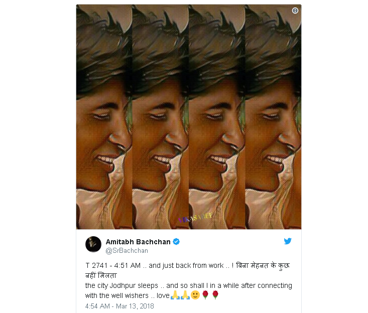 ਤੁਹਾਨੂੰ ਦਸ ਦੇਈਏ ਕਿ ਇਸ ਤੋਂ ਪਹਿਲਾਂ ਬਿੱਗ ਬੀ ਨੇ ਸਵੇਰੇ 5 ਵਜੇ ਬਲਾਗ ਲਿਖਿਆ ਸੀ ਜਿਥੇ ਉਨ੍ਹਾਂ ਨੇ ਜੋਧਪੁਰ ਦੀ ਖੂਬਸੂਰਤੀ ਦੀ ਤਾਰੀਫ਼ ਕਰਦਿਆਂ ਲਿਖਿਆ ਸੀ ਕਿ ਸਿਹਤ ਠੀਕ ਨਹੀਂ ਲੱਗ ਰਹੀ । ਪਿਆਰ ਅਤੇ ਦੁਆ, ਇਸ ਤੋਂ ਬਾਅਦ ਉਹ ਸ਼ੂਟਿੰਗ ਲਈ ਨਿਕਲ ਗਏ ਜਿਥੇ ਉਨ੍ਹਾਂ ਦੀ ਸਿਹਤ ਜ਼ਿਆਦਾ ਵਿਗੜ ਗਈ। ਕਿਹਾ ਜਾ ਰਿਹਾ ਹੈ ਕਿ ਜੋਧਪੁਰ 'ਚ ਜ਼ਿਆਦਾ ਗਰਮੀ ਹੋਣ ਦੇ ਕਾਰਨ ਉਨ੍ਹਾਂ ਦੀ ਸਿਹਤ ਖ਼ਰਾਬ ਹੋ ਗਈ। ਦੱਸਣਯੋਗ ਹੈ ਕਿ ਇਸ ਤੋਂ ਪਹਿਲਾਂ ਵੀ ਉਨ੍ਹਾਂ ਨੇ ਵਿਗੜ ਰਹੀ ਸਿਹਤ ਦਾ ਜ਼ਿਕਰ ਕੀਤਾ ਸੀ ਅਤੇ ਕਿਹਾ ਸੀ ਕਿ ਮੰਗਲਵਾਰ ਨੂੰ ਉਨ੍ਹਾਂ ਦੇ ਡਾਕਟਰ ਚੈਕਅਪ ਲਈ ਆ ਰਹੇ ਹਨ ਅਤੇ ਆਪਣੀ ਖ਼ੈਰੀਅਤ ਤੁਹਾਨੂੰ ਸਮੇਂ ਸਮੇਂ 'ਤੇ ਦਿੰਦਾ ਰਹਾਂਗਾ। ਦਸਣਯੋਗ ਹੈ ਕਿ ਇਸ ਮੌਕੇ ਅਮਿਤਾਭ ਬੱਚਨ ਨਾਲ ਆਮਿਰ ਖਾਨ ਵੀ ਮੌਜ਼ੂਦ ਸਨ।