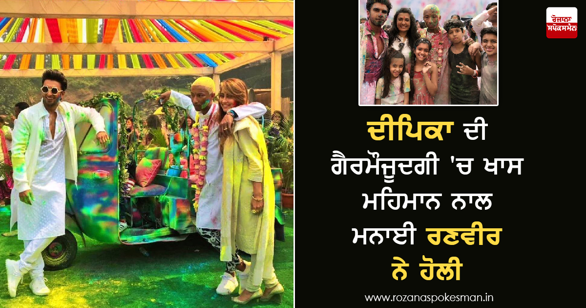 ਇਹਨਾਂ ਤਸਵੀਰਾਂ ’ਚ ਰੈਪਰ ਫਰੇਲ ਨਾਲ ਰਣਵੀਰ ਸਿੰਘ ਹੋਲੀ ਖੇਡਦੇ ਹੋਏ ਬੇਹੱਦ ਕਮਾਲ ਦੇ ਦਿਖ ਰਹੇ ਹਨ। ਦੱਸਣਯੋਗ ਹੈ ਕਿ ਇਸ ਇਵੈਂਟ ’ਚ ਇਕ ਖਾਸ ਇਨਸਾਨ ਨੂੰ ਛੱਡ ਕੇ ਬਾਲੀਵੁੱਡ ਦੀਆਂ ਕਈ ਹਸਤੀਆਂ ਮੌਜੂਦ ਸਨ ਅਤੇ ਉਹ ਖਾਸ ਇਨਸਾਨ ਸੀ ਦੀਪਿਕਾ ਪਾਦੁਕੋਣ ਜੋ ਇਸ ਮੌਕੇ 'ਤੇ ਪ੍ਰੇਮੀ ਰਣਵੀਰ ਦੇ ਨਾਲ ਨਹੀਂ ਸੀ। ਇਸ ਕਰਕੇ ਰਣਵੀਰ ਨੂੰ ਵੀ. ਜੇ. ਅਨੁਸ਼ਾ ਦਾਂਡੇਕਰ, ਸੈਲੀਬ੍ਰਿਟੀ ਸ਼ੈਫ ਸਾਰਾ ਟੋਡ, ਮਿੰਨੀ ਮਾਥੁਰ ਤੇ ਉਨ੍ਹਾਂ ਦੇ 2 ਬੱਚਿਆਂ ਨਾਲ ਹੀ ਹੋਲੀ ਮਨਾਉਣੀ ਪਈ।