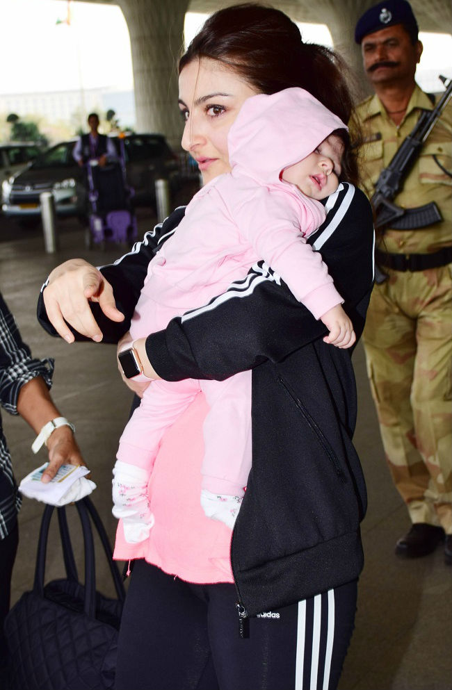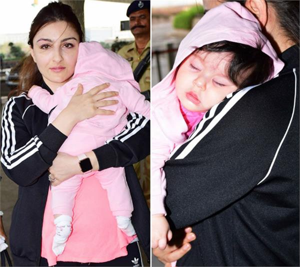 ਮੁੰਬਈ : ਬਾਲੀਵੁੱਡ ਅਭਿਨੇਤਰੀ ਸੋਹਾ ਅਲੀ ਖਾਨ ਪਹਿਲੀ ਵਾਰ ਬੇਟੀ ਇਨਾਇਆ ਨਾਲ ਏਅਰਪੋਰਟ 'ਤੇ ਦਿਖਾਈ ਦਿੱਤੀ। ਇਸ ਦੌਰਾਨ ਸੋਹਾ ਦੀ ਗੋਦ 'ਚ ਇਨਾਇਆ ਬੇਹੱਦ ਕਿਊਟ ਨਜ਼ਰ ਆ ਰਹੀ ਸੀ। ਦਰਸਅਲ, ਜਦੋਂ ਇਹ ਤਸਵੀਰਾਂ ਲਈਆਂ ਜਾ ਰਹੀਆਂ ਸਨ ਤਾਂ ਉਦੋਂ ਇਨਾਇਆ ਮੰਮੀ ਦੀ ਗੋਦ 'ਚ ਆਰਾਮ ਕਰ ਰਹੀ ਸੀ।ਇਨਾਇਆ ਦੀਆਂ ਇਹ ਕਿਊਟ ਤਸਵੀਰਾਂ ਦੇਖਣ ਤੋਂ ਬਾਅਦ ਇਹ ਕਹਿਣਾ ਗਲਤ ਨਹੀਂ ਹੋਵੇਗਾ ਕਿ ਉਹ ਕਿਊਟਨੈੱਸ ਦੇ ਮਾਮਲੇ 'ਚ ਕਰੀਨਾ ਕਪੂਰ ਦੇ ਬੇਟੇ ਤੈਮੂਰ ਨੂੰ ਟੱਕਰ ਦੇਣ ਵਾਲੀ ਹੈ।