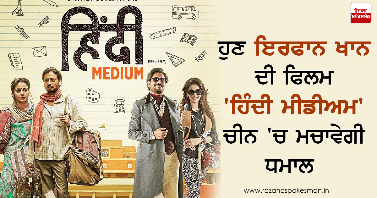 ਮੁੰਬਈ: ਬਾਲੀਵੁੱਡ ਦੀਆਂ ਫਿਲਮਾਂ ਇਕ ਦੇ ਬਾਅਦ ਇਕ ਚੀਨ 'ਚ ਰਿਲੀਜ਼ ਹੋ ਰਹੀਆਂ ਹਨ। ਆਮੀਰ ਖਾਨ ਦੀ ਫਿਲਮ ਦੰਗਲ ਅਤੇ ਸਲਮਾਨ ਖਾਨ ਦੀ ਬਜਰੰਗੀ ਭਾਈਜਾਨ ਦੇ ਬਾਅਦ ਹੁਣ ਇਰਫਾਨ ਖਾਨ ਦੀ ਫਿਲਮ 'ਹਿੰਦੀ ਮੀਡੀਅਮ' ਚੀਨ 'ਚ ਧਮਾਲ ਮਚਾਉਣ ਨੂੰ ਤਿਆਰ ਹੈ। ਹਿੰਦੀ ਮੀਡੀਅਮ ਚੀਨ ਦੇ ਸਿਨੇਮਾਘਰਾਂ 'ਚ ਅਪ੍ਰੈਲ 'ਚ ਰਿਲੀਜ਼ ਹੋਵੇਗੀ। 'ਹਿੰਦੀ ਮੀਡੀਅਮ' ਫਿਲਮ ਚੀਨ ਦੇ ਦਰਸ਼ਕਾਂ ਨੂੰ ਕਾਫ਼ੀ ਪਸੰਦ ਆਉਣ ਦੀ ਉਮੀਦ ਹੈ।