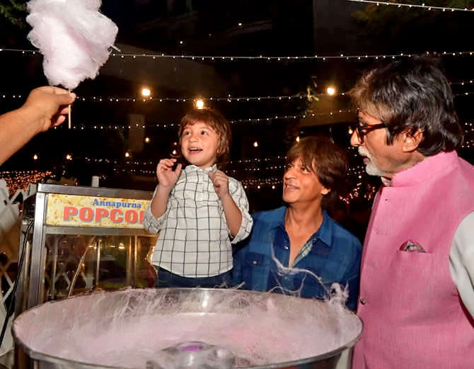 ਸ਼ਾਹਰੁਖ ਖਾਨ ਦਾ ਪੁੱਤਰ ਅਬਰਾਮ, ਅਮੀਤਾਭ ਬੱਚਨ ਦੇ ਨਾਲ ਕਾਤਰ ਕੈਂਡੀ ਇੰਜੁਆਏ ਕਰਦੇ ਵਿਖਣ। ਬਿੱਗ ਬੀ ਨੇ ਆਰਾਧਿਆ ਦੀ ਬਰਥਡੇ ਪਾਰਟੀ ਦੀ ਕੁੱਝ ਫੋਟੋਜ ਟਵਿਟਰ ਉੱਤੇ ਸ਼ੇਅਰ ਕੀਤੀ ਹੈ।