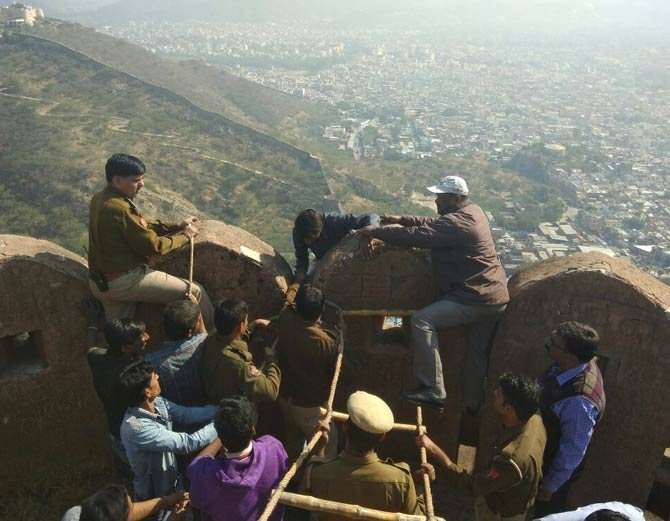 ਜੈਪੁਰ: ਨਾਹਰਗੜ ਫੋਰਟ ਉੱਤੇ ਸ਼ੁੱਕਰਵਾਰ ਸਵੇਰੇ ਇੱਕ ਵਿਅਕਤੀ ਦੀ ਲਾਸ਼ ਲਮਕੀ ਮਿਲੀ। ਕੋਲ ਹੀ ਪੱਥਰਾਂ 'ਤੇ ਲਿਖਿਆ ਮਿਲਿਆ ਕਿ ਪਦਮਾਵਤੀ ਦਾ ਵਿਰੋਧ ਕਰਨ ਵਾਲਿਆਂ ਅਸੀਂ ਸਿਰਫ ਪੁਤਲੇ ਨਹੀਂ ਜਲਾਉਂਦੇ ਹਾਂ। ਦੱਸ ਦਈਏ ਕਿ ਪਦਮਾਵਤੀ ਦੇ ਵਿਰੋਧ ਦੇ ਚਲਦੇ ਫਿਲਮਮੇਕਰਸ ਨੇ ਫਿਲਹਾਲ ਰਿਲੀਜ ਟਾਲ ਦਿੱਤੀ ਹੈ। ਇਹ ਵੀ ਕਿਹਾ ਕਿ ਭਾਰਤ ਵਿੱਚ ਰਿਲੀਜ ਤੋਂ ਪਹਿਲਾਂ ਫਿਲਮ ਵਿਦੇਸ਼ ਵਿੱਚ ਰਿਲੀਜ ਨਹੀਂ ਹੋਵੇਗੀ। ਪਦਮਾਵਤੀ ਨੂੰ ਬ੍ਰਿਟਿਸ਼ ਸੈਂਸਰ ਬੋਰਡ ਨੇ ਬਿਨਾਂ ਕੱਟ ਲਗਾਏ ਸਕਰੀਨਿੰਗ ਦੀ ਮਨਜ਼ੂਰੀ ਦੇ ਦਿੱਤੀ ਹੈ।