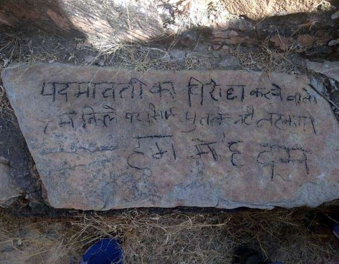 - ਘਟਨਾ ਦੀ ਜਾਣਕਾਰੀ ਮਿਲਦੇ ਹੀ ਪੁਲਿਸ ਮੌਕੇ ਉੱਤੇ ਪਹੁੰਚੀ। ਕਿਹਾ ਕਿ ਪਦਮਾਵਤੀ ਫਿਲਮ ਨਾਲ ਜੁੜੀ ਜੋ ਧਮਕੀਆਂ ਪੱਥਰ ਉੱਤੇ ਲਿਖੀਆਂ ਮਿਲੀਆਂ ਹਨ, ਉਹ ਇਸ ਵਿਅਕਤੀ ਨਾਲ ਜੁੜੀਆਂ ਹਨ ਜਾਂ ਨਹੀਂ, ਇਹ ਕਹਿਣਾ ਮੁਸ਼ਕਿਲ ਹੈ।