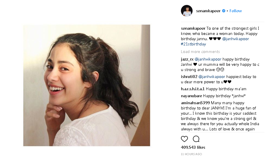 ਸ਼੍ਰੀਦੇਵੀ ਇਸ ਫਿਲਮ ਨੂੰ ਲੈ ਕੇ ਕਾਫੀ ਉਤਸ਼ਾਹਿਤ ਸੀ ਪਰ ਹੁਣ ਉਹ ਇਸ ਨੂੰ ਦੇਖਣ ਲਈ ਜ਼ਿੰਦਾ ਨਹੀਂ ਰਹੀ ਹੈ। ਇਸ ਔਖੀ ਘੜੀ ਵਿਚ ਹਰ ਕੋਈ ਜਾਹਨਵੀ ਦੇ ਨਾਲ ਹੈ, ਸਾਡੇ ਵੱਲੋਂ ਵੀ ਜਾਹਨਵੀ ਕਪੂਰ ਨੂੰ ਜਨਮਦਿਨ ਦੀ ਲੱਖ ਲੱਖ ਵਧਾਈਆਂ।