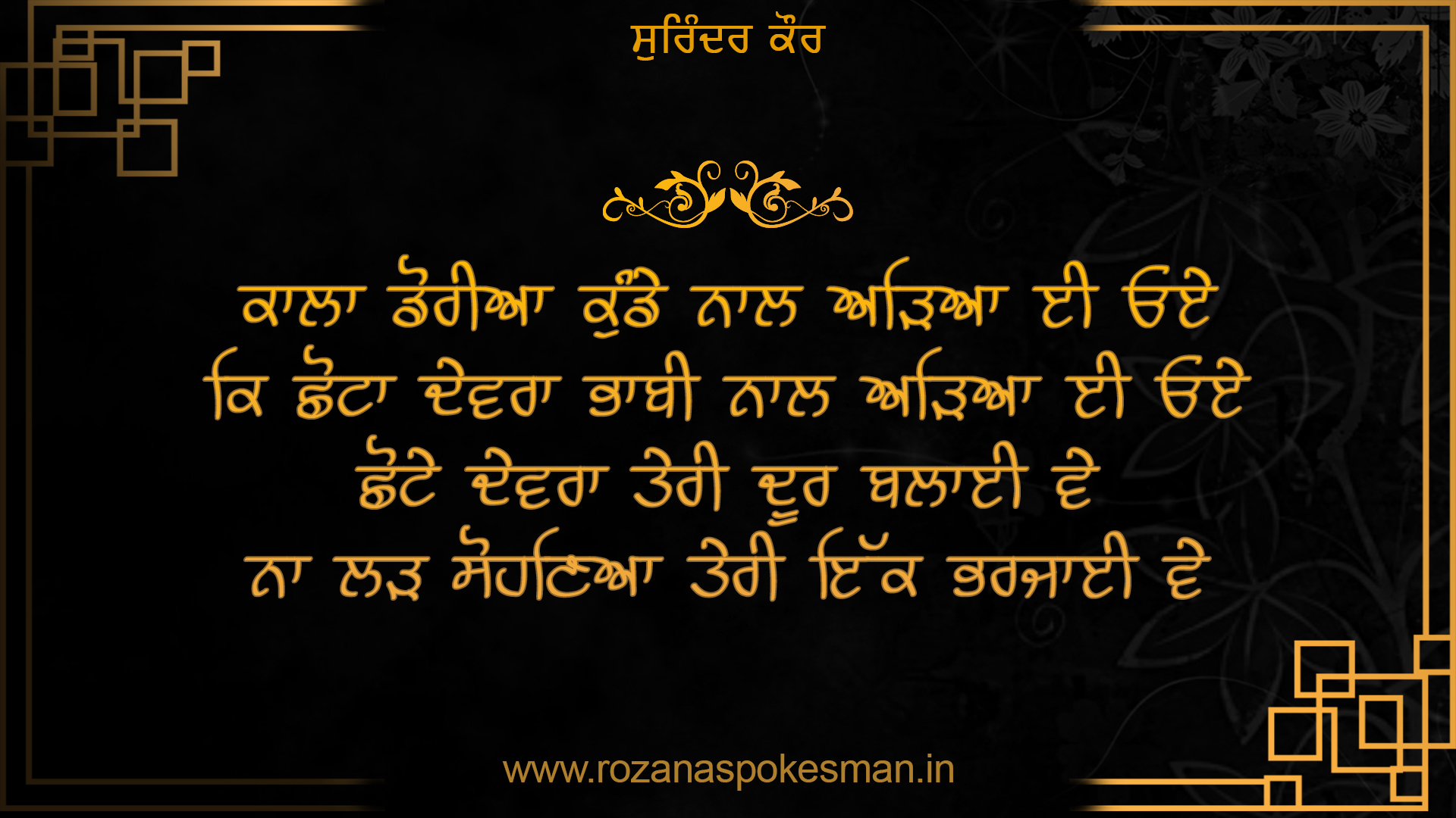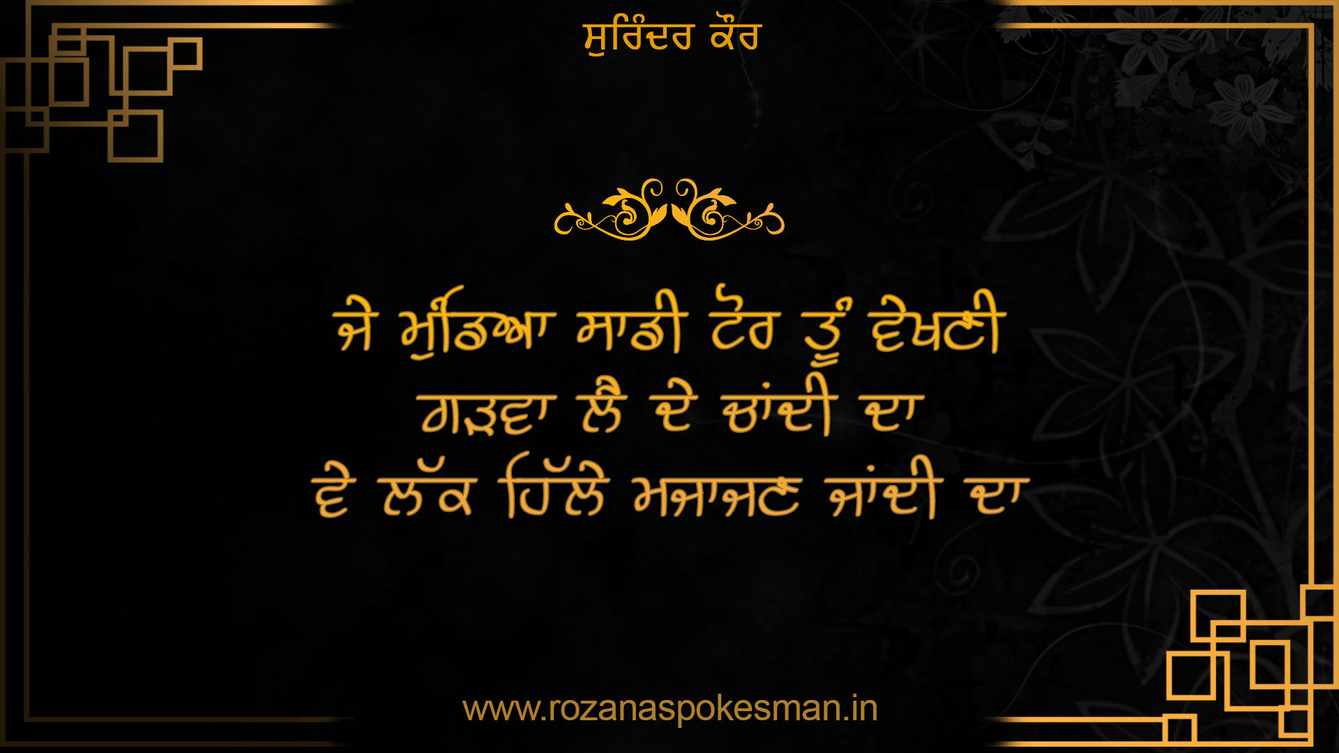 ਪੰਜਾਬ ਦੇ ਲੋਕ ਸੰਗੀਤ ਦਾ ਜ਼ਿਕਰ ਕਰਦਿਆਂ ਹੀ ਮਨ ਅੰਦਰ ਜਿਹੜੇ ਚਿਹਰੇ ਸਭ ਤੋਂ ਪਹਿਲਾਂ ਯਾਦ ਆਉਂਦੇ ਹਨ ਉਹਨਾਂ ਵਿੱਚ ਨਾਂਅ ਹੈ ਸੁਰਿੰਦਰ ਕੌਰ ਜਿਹਨਾਂ ਨੂੰ ਦੁਨੀਆ 'ਪੰਜਾਬ ਦੀ ਕੋਇਲ' ਦੇ ਨਾਂਅ ਤੋਂ ਜਾਣਦੀ ਹੈ।