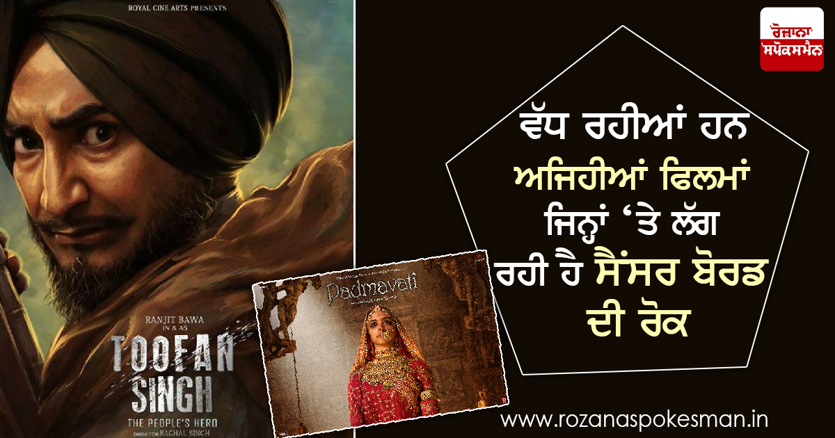 4. ਪ੍ਰਸੂਨ ਜੋਸ਼ੀ ਨੂੰ ਸੈਂਸਰ ਬੋਰਡ ਦਾ ਨਵਾਂ ਪ੍ਰਧਾਨ ਬਣਾਏ ਜਾਣ ਤੋਂ ਬਾਅਦ ਫਿਲਮ ਇੰਡਸਟਰੀ ਨੂੰ ਪਹਿਲਾ ਝਟਕਾ ਲੱਗਾ ਹੈ। ਪੰਜਾਬੀ ਫਿਲਮ 'ਤੂਫਾਨ ਸਿੰਘ' ਨੂੰ ਸੈਂਸਰ ਬੋਰਡ ਆਫ ਸਰਟੀਫਿਕੇਟ ਨੇ ਬੈਨ ਕਰ ਦਿੱਤਾ ਹੈ। ਪੰਜਾਬੀ ਫਿਲਮ 'ਤੂਫਾਨ ਸਿੰਘ' ਬਾਘੇਲ ਸਿੰਘ ਨੇ ਡਾਇਰੈਕਟ ਕੀਤਾ ਹੈ। ਇਸ ਫਿਲਮ ਦੇ ਹੀਰੋ ਰਣਜੀਤ ਬਾਵਾ ਹੈ, ਜੋ ਕਿ ਦੇਸ਼ ਦੇ ਮਿਸਟਰ ਤੇ ਰਾਜਨੀਤੀ 'ਚ ਮੌਜੂਦ ਭ੍ਰਿਸ਼ਟਾਚਾਰ ਨਾਲ ਲੜਨ ਲਈ ਅੱਤਵਾਦੀ ਗਤੀਵਿਧੀਆਂ ਦਾ ਸਾਹਰਾ ਲੈਂਦਾ ਹੈ। ਫਿਲਮ ਦੇ ਹਿੰਸਾਤਮਕ ਕੰਟੇਟ ਨੂੰ ਦੇਖਦੇ ਹੋਏ ਸੈਂਸਰ ਬੋਰਡ ਨੇ ਇਸ ਨੂੰ ਬੈਨ ਕਰ ਦਿੱਤਾ ਹੈ।