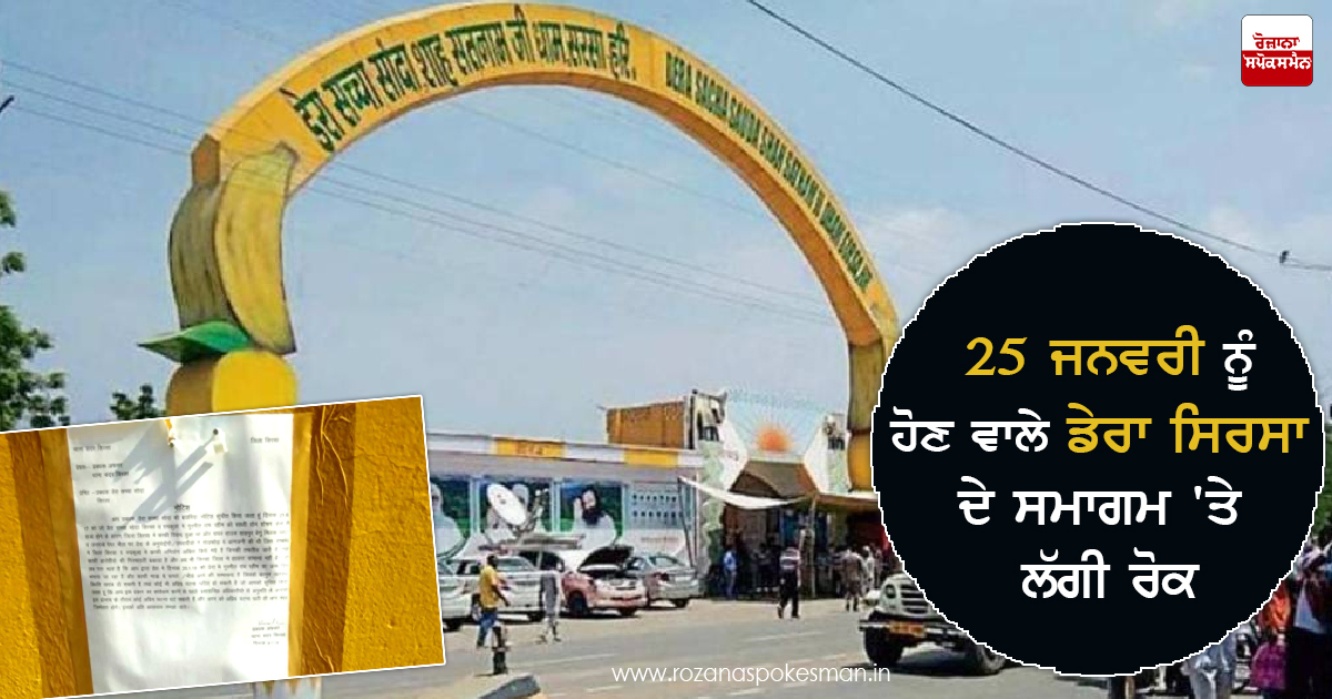 ਪੁਲਿਸ ਨੇ ਡੇਰਾ ਸਿਰਸਾ ਦੇ ਹੈੱਡਕੁਆਟਰ ਦੇ ਬਾਹਰ ਕੋਈ ਵੀ ਸਮਾਗਮ ਨਾ ਕਰਵਾਏ ਜਾਣ ਦੇ ਨੋਟਿਸ ਚਿਪਕਾ ਦਿੱਤੇ ਹਨ। ਇਸ ਦੇ ਨਾਲ 25 ਜਨਵਰੀ ਨੂੰ ਸ਼ਾਹ ਸਤਨਾਮ ਸਿੰਘ ਦੇ ਜਨਮ ਦਿਹਾੜੇ ਮੌਕੇ ਹੋਣ ਵਾਲੇ ਸਮਾਗਮ ‘ਤੇ ਸਵਾਲੀਆ ਚਿੰਨ੍ਹ ਲੱਗ ਗਿਆ ਹੈ।