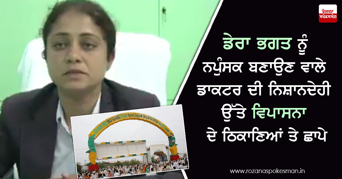 ਚੰਡੀਗੜ੍ਹ: ਚੰਡੀਗੜ੍ਹ ਤਿੰਨ ਦਿਨ ਪਹਿਲਾਂ ਡੇਰਾ ਸੱਚਾ ਸੌਦਾ ਹੈੱਡਕੁਆਟਰ ਸਿਰਸਾ ਤੋਂ ਗ੍ਰਿਫਤਾਰ ਕੀਤੇ ਗਏ। ਸੈਕੜਾਂ ਡੇਰਾ ਪ੍ਰੇਮੀਆਂ ਨੂੰ ਨਪੁੰਸਕ ਬਣਾਉਣ ਦੇ ਆਰੋਪੀ ਡਾਕਟਰ ਐਮਪੀ ਸਿੰਘ ਉਰਫ ਮੋਹਿੰਦਰ ਇੰਸਾਨ ਦੀ ਨਿਸ਼ਾਨਦੇਹੀ ਉੱਤੇ ਹਰਿਆਣਾ ਪੁਲਿਸ ਨੇ ਫਰਾਰ ਚੱਲ ਰਹੀ ਡੇਰਾ ਦੀ ਚੇਅਰਪਰਸਨ ਵਿਪਾਸਨਾ ਇਨਸਾਨ ਦੇ ਕਈ ਠਿਕਾਣਿਆਂ ਉੱਤੇ ਛਾਪੇਮਾਰੀ ਕੀਤੀ ਹੈ।