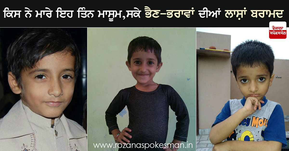 ਪਿੰਡ ਸਾਰਸਾ ਤੋਂ ਐਤਵਾਰ ਨੂੰ ਤਿੰਨ ਸਕੇ ਭਰਾ-ਭੈਣ ਸ਼ੱਕੀ ਹਲਾਤਾਂ ਵਿੱਚ ਪਿੰਡ ਤੋਂ ਲਾਪਤਾ ਹੋ ਗਏ ਸਨ। ਬੱਚਿਆਂ ਦੇ ਲਾਪਤਾ ਹੋਣ 'ਤੇ ਪਿੰਡ ਵਿੱਚ ਹੜਕੰਪ ਮੱਚ ਗਿਆ ਅਤੇ ਪਰਿਵਾਰ ਵਾਲਿਆਂ ਦਾ ਰੋ-ਰੋ ਬੁਰਾ ਹਾਲ ਹੈ। ਉਥੇ ਹੀ ਪੁਲਿਸ ਬੱਚਿਆਂ ਦੀ ਤਲਾਸ਼ ਵਿੱਚ ਜੁਟੀ ਸੀ।