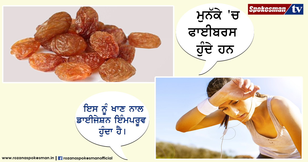ਜਾਣਕਾਰੀ ਅਨੁਸਾਰ ਮੁਨੱਕੇ ਨੂੰ ਦੁੱਧ ਜਾਂ ਪਾਣੀ ਵਿੱਚ ਭਿਓ ਕੇ ਜਿਹੇ ਚਾਹੇ ਲੈ ਸਕਦੇ ਹੋ। ਦੱਸ ਰਹੇ ਹਾਂ ਇਸਦੇ ਫਾਇਦੇ। ਇੱਕ ਦਿਨ ਵਿੱਚ ਕਿੰਨੇ ਮੁਨੱਕੇ ਖਾਣ ਨਾਲ ਫਾਇਦਾ ਹੋਵੇਗਾ ? ਐਵਰੇਜ ਵਿਅਕਤੀ ਨੂੰ ਇੱਕ ਦਿਨ ਵਿੱਚ 5 ਮੁਨੱਕੇ ਖਾਣੇ ਚਾਹੀਦੇ ਹਨ।
