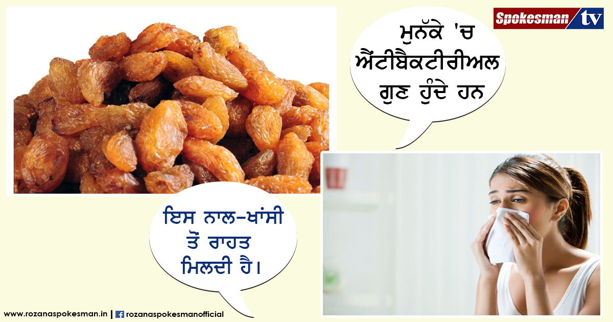 5. ਮੁਨੱਕੇ 'ਚ ਐਂਟੀਬੈਕਟੀਰੀਅਲ ਗੁਣ ਹੁੰਦੇ ਹਨ, ਇਸ ਨਾਲ- ਖਾਂਸੀ ਤੋਂ ਰਾਹਤ ਮਿਲਦੀ ਹੈ।