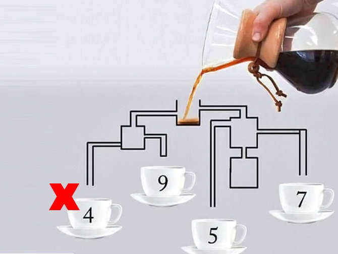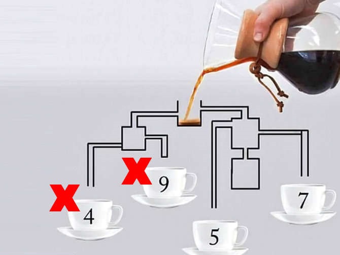 ਇਸ ਵਿੱਚ ਇਹ ਦੱਸਣਾ ਹੈ ਕਿ ਸਭ ਤੋਂ ਪਹਿਲਾਂ ਕਾਫ਼ੀ ਇਸ 4 ਕੱਪਸ ਵਿੱਚੋਂ ਕਿਸ 'ਚ ਜਾਵੇਗੀ - 4ਵੇਂ ਕੱਪ ਵਿੱਚ , 9ਵੇਂ ਕੱਪ ਵਿੱਚ , 5ਵੇਂ ਕੱਪ ਵਿੱਚ ਜਾਂ 7ਵੇਂ ਕੱਪ ਵਿੱਚ।
