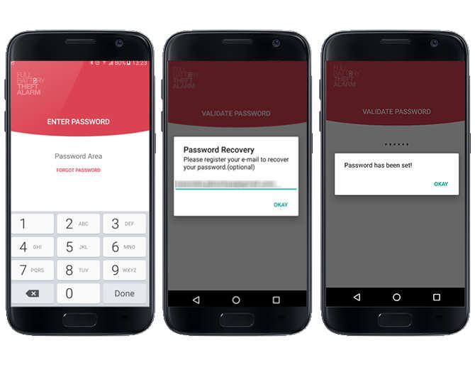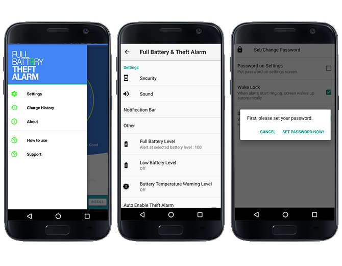 ਹੁਣ ਟਾਪ ਲੇਫਟ ਉੱਤੇ ਦਿੱਤੀ ਗਈ ਤਿੰਨ ਲਾਈਨ ਉੱਤੇ ਕਲਿਕ ਕਰੋ, ਇਹ ਫੋਨ ਦੀ ਸੈਟਿੰਗ ਮੇਨੂ ਹੈ। ਇਸ ਵਿੱਚ ਸੈਟਿੰਗ ਦਾ ਆਪਸ਼ਨ ਨਜ਼ਰ ਆਵੇਗਾ ਉਸ ਉੱਤੇ ਜਾਓ। ਹੁਣ ਸਿਕਿਉਰਿਟੀ ਦੇ ਆਪਸ਼ਨ ਉੱਤੇ ਜਾਕੇ ਇੱਕ ਪਾਸਵਰਡ ਸੈਟ ਕਰੋ। ਇਹ ਫੋਨ ਦੇ ਚੋਰੀ ਹੋਣ ਦੀ ਹਾਲਤ ਵਿੱਚ ਕੰਮ ਦਿੰਦਾ ਹੈ। ਪਾਸਵਰਡ ਹੋਣ ਨਾਲ ਫੋਨ ਅਨਲਾਕ ਨਹੀਂ ਹੁੰਦਾ ਅਤੇ ਅਲਾਰਮ ਵੱਜਦਾ ਰਹਿੰਦਾ ਹੈ।
