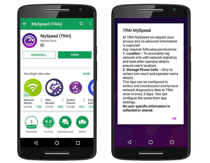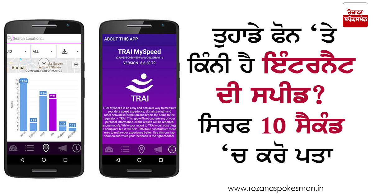 ਟੈਲੀਕਾਮ ਰੈਗਿਉਲੇਟਰੀ ਅਥਾਰਿਟੀ ਆਫ ਇੰਡੀਆ (TRAI) ਨੇ ਇੱਕ ਨਵਾਂ ਐਪ ਲਾਂਚ ਕੀਤਾ ਹੈ। ਇਸਦੀ ਮਦਦ ਨਾਲ ਯੂਜਰਸ ਫੋਨ ਉੱਤੇ ਮਿਲ ਰਹੀ ਇੰਟਰਨੈਟ ਸਪੀਡ ਨੂੰ ਚੈਕ ਕਰ ਸਕਦੇ ਹਨ। ਯਾਨੀ ਕੰਪਨੀ ਜਿਸ ਸਪੀਡ ਦਾ ਦਾਅਵਾ ਕਰ ਰਹੀ ਹੈ ਕਿ ਉਹ ਫੋਨ ਉੱਤੇ ਮਿਲ ਰਹੀ ਹੈ ਜਾਂ ਨਹੀਂ ? ਇਸ ਗੱਲ ਦਾ ਪਤਾ ਲਗਾਇਆ ਜਾ ਸਕਦਾ ਹੈ। ਇਸ ਐਪ ਦਾ ਨਾਮ MySpeed ਹੈ। ਇਸਦੀ ਮਦਦ ਨਾਲ ਯੂਜਰ ਸਿਰਫ 10 ਸੈਕੰਡ ਵਿੱਚ ਫੋਨ ਉੱਤੇ ਆ ਰਹੀ ਇੰਟਰਨੈਟ ਸਪੀਡ ਦਾ ਪਤਾ ਲਗਾ ਸਕਦਾ ਹੈ। ਇਹ ਐਪ ਜੀਓ, ਏਅਰਟੈਲ, ਆਇਡੀਆ, ਵੋਡਾਫੋਨ, BSNL, ਏਅਰਸੈਲ ਸਮੇਤ ਸਾਰੇ ਟੈਲੀਕਾਮ ਕੰਪਨੀ ਦੀ ਇੰਟਰਨੈਟ ਸਪੀਡ ਦੱਸਦਾ ਹੈ।