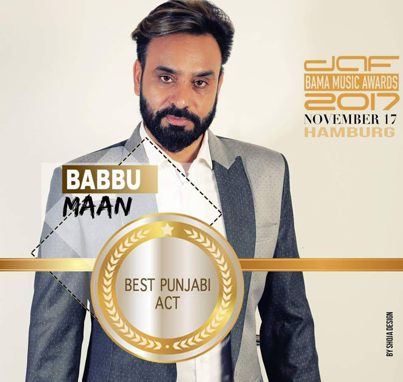 ਮਸ਼ਹੂਰ ਗੀਤਕਾਰ, ਗਾਇਕ, ਐਕਟਰ, ਡਾਇਰੈਕਟਰ, ਪ੍ਰੋਡਿਊਸਰ ਤੇ ਮਿਊਜ਼ਿਕ ਕੰਪੋਜ਼ਰ ਤਜਿੰਦਰ ਸਿੰਘ ਮਾਨ ਉਰਫ ਬੱਬੂ ਮਾਨ ਹਾਲ ਹੀ 'ਚ 'ਡੈਫ ਬਾਮਾ ਮਿਊਜ਼ਿਕ ਐਵਾਰਡਸ 2017' ਲਈ ਨਾਮੀਨੇਟ ਹੋਏ ਸਨ। ਵੱਖ-ਵੱਖ ਸੱਭਿਆਚਾਰਾਂ ਦੇ ਸੰਗੀਤ ਨੂੰ ਹੁੰਗਾਰਾ ਦੇਣ ਲਈ ਐਵਾਰਡ ਸਮਾਰੋਹ ਹਰ ਸਾਲ ਆਯੋਜਿਤ ਕੀਤਾ ਜਾਂਦਾ ਹੈ, ਜਿਸ 'ਚ ਪੂਰਬੀ ਯੂਰਪ ਦੇਸ਼ਾਂ ਦੇ ਟੈਲੇਂਟਿਡ ਕਲਾਕਾਰਾਂ ਨੂੰ ਸਨਮਾਨਿਤ ਕੀਤਾ ਜਾਂਦਾ ਹੈ। ਬੱਬੂ ਮਾਨ ਨੇ ਇਸ ਐਵਾਰਡ ਸਮਾਰੋਹ ਲਈ ਨਾਮੀਨੇਟ ਹੋ ਕੇ ਨਾ ਸਿਰਫ ਪੰਜਾਬੀਆਂ ਦਾ ਮਾਣ ਵਧਾਇਆ ਹੈ, ਸਗੋਂ ਅੰਤਰਰਾਸ਼ਟਰੀ ਪੱਧਰ 'ਤੇ 2 ਮੁੱਖ ਐਵਾਰਡ ਜਿੱਤ ਕੇ ਪੂਰੀ ਦੁਨੀਆ 'ਚ ਪੰਜਾਬੀ ਬੋਲੀ ਦਾ ਨਾਂ ਉੱਚਾ ਕੀਤਾ ਹੈ।