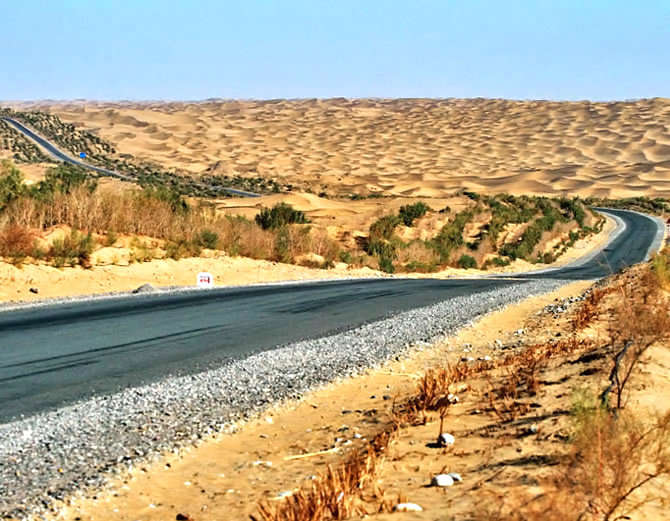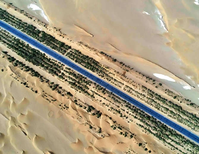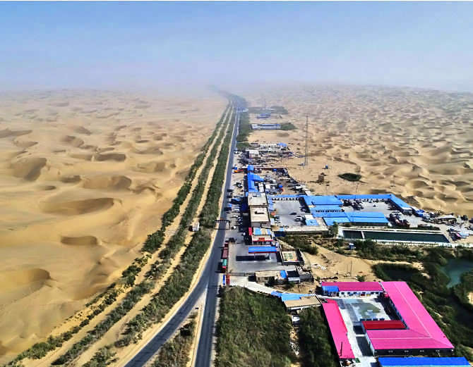 ਸ਼ਿੰਜਿਆਂਗ: ਦੁਨੀਆ ਦੇ ਦੂਜੇ ਅਤੇ ਚੀਨ ਦੇ ਸਭ ਤੋਂ ਵੱਡੇ ਖਿਸਕਦੇ ਤਕਲਾਮਾਕਨ ਰੇਗਿਸਤਾਨ ਵਿੱਚ ਆਇਲ ਕੰਪਨੀ ਦੇ ਵਰਕਰਸ ਨੇ ਜਿੰਦਗੀ ਲਗਾ ਦਿੱਤੀ ਹੈ। ਇਸ ਰੇਗਿਸਤਾਨ ਨੂੰ ਪਹਿਲਾਂ ‘ਸੀ ਆਫ ਡੇਥ’ ਕਿਹਾ ਜਾਂਦਾ ਸੀ। ਪਰ ਵਰਕਰਸ ਨੇ 15 ਸਾਲ ਵਿੱਚ ਰੇਗਿਸਤਾਨ ਵਿੱਚ ਬਣਾਏ ਗਏ 436 ਕਿਮੀ ਹਾਈਵੇ ਦੇ ਦੋਨੋਂ ਤਰਫ ਦਰੱਖਤ ਲਗਾਕੇ ਹਰਿਆਲੀ ਲਿਆ ਦਿੱਤੀ ਹੈ। ਹਾਈਵੇਅ ਪ੍ਰੋਜੈਕਟ 2002 ਵਿੱਚ ਸ਼ੁਰੂ ਹੋਇਆ ਸੀ।