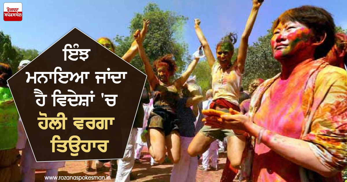 ਪ੍ਰੇਮ, ਆਨੰਦ ਅਤੇ ਮਸਤੀ ਦਾ ਤਿਉਹਾਰ ਹਰ ਦੇਸ਼ ਵਿਚ ਮਨਾਇਆ ਜਾਂਦਾ ਹੈ ਅਤੇ ਸਾਰਿਆਂ ਦੀਆਂ ਮੂਲ ਭਾਵਨਾਵਾਂ ਇਕੋ ਵਰਗੀਆਂ ਹੁੰਦੀਆਂ ਹੈ। ਆਪਣੇ ਦੇਸ਼ ਵਿਚ ਹੋਲੀ ਅਜਿਹਾ ਹੀ ਇਕ ਤਿਉਹਾਰ ਹੈ ਜਿਸ ਵਿਚ ਦੁਸ਼ਮਣਾਂ ਨੂੰ ਵੀ ਗਲੇ ਲਗਾਕੇ ਲੋਕ ਰੰਗ ਗੁਲਾਲ ਲਗਾਉਂਦੇ ਹਨ ਅਤੇ ਦੋਸਤੀ ਦੀ ਨਵੀਂ ਸ਼ੁਰੂਆਤ ਕਰਦੇ ਹਨ। ਦੂਜੇ ਦੇਸ਼ਾਂ ਵਿਚ ਕੁਦਰਤ ਦੇ ਸੰਗ ਆਨੰਦ ਮਨਾਉਣ ਦੇ ਇਸ ਤਿਉਹਾਰ ਦਾ ਨਾਮ ਅਲੱਗ ਹੈ ਪਰ ਅੰਦਾਜ਼ ਕਾਫ਼ੀ ਕੁਝ ਆਪਣੇ ਦੇਸ਼ ਦੀ ਹੋਲੀ ਨਾਲ ਮਿਲਦਾ ਜੁਲਦਾ ਹੈ।
