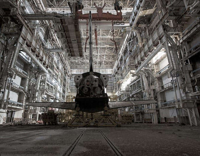 - ਕਜਾਖਸਤਾਨ ਦੇ ਬੈਕੋਨਰ ਕਾਸਮੋਡਰੋਮ ਹੈਂਗਰ ਦੇ ਕੋਲ ਸਥਿਤ ਇਸ ਉਜਾੜ ਵੇਅਰਹਾਊਸ ਕਰੀਬ 433 ਫੁੱਟ ਲੰਮਾ ਅਤੇ 203 ਫੁੱਟ ਉੱਚਾ ਹੈ।