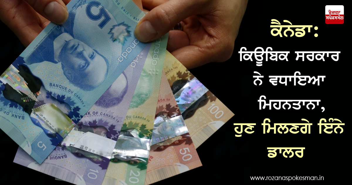 ਟੋਰਾਂਟੋ: ਕਿਊਬਿਕ ਸਰਕਾਰ ਨੇ ਇਸ ਸਾਲ ਦੇ ਮਈ ਮਹੀਨੇ ਤੋਂ ਆਪਣੇ ਕਾਮਿਆਂ ਦੇ ਮਿਹਨਤਾਨੇ 'ਚ ਵਾਧਾ ਕਰਨ ਦਾ ਫੈਸਲਾ ਲਿਆ ਹੈ। ਕਿਊਬਿਕ ਸਰਕਾਰ ਨੇ ਕਾਮਿਆਂ ਦੇ ਮਿਹਨਤਾਨੇ 'ਚ 75 ਪ੍ਰਸੈਂਟ ਦਾ ਵਾਧਾ ਕਰਨ ਦਾ ਐਲਾਨ ਕੀਤਾ ਹੈ, ਜੋ ਕਿ ਮਈ ਮਹੀਨੇ ਤੋਂ ਲਾਗੂ ਹੋ ਜਾਵੇਗਾ।