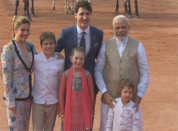 ਨਵੀਂ ਦਿੱਲੀ - ਰਾਸ਼ਟਰਪਤੀ ਭਵਨ ਵਿਖੇ ਕੈਨੇਡਾ ਦੇ ਪ੍ਰਧਾਨ ਮੰਤਰੀ ਜਸਟਿਨ ਟਰੂਡੋ ਤੇ ਉਨ੍ਹਾਂ ਦੇ ਪਰਿਵਾਰ ਦਾ ਪ੍ਰਧਾਨ ਮੰਤਰੀ ਨਰਿੰਦਰ ਮੋਦੀ ਵਲੋਂ ਸ਼ਾਨਦਾਰ ਸਵਾਗਤ ਕੀਤਾ ਗਿਆ ਹੈ।