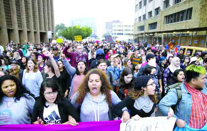 ਸ਼ਹਿਰ ਵਿਚ ਟਰੰਪ ਇੰਟਰਨੈਸ਼ਲਨ ਹੋਟਲ ਐਂਡ ਟਾਵਰ ਦੇ ਬਾਹਰ ਇਕੱਤਰ ਹੋਏ। ਇਥੇ ਪ੍ਰਦਰਸ਼ਨ ਕਰ