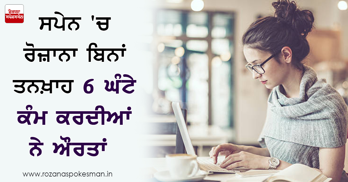 ਮੈਡਰਿਡ : ਵਰਤਮਾਨ ਸਮੇਂ ਵਿਚ ਔਰਤਾਂ ਘਰ ਦੇ ਨਾਲ-ਨਾਲ ਬਾਹਰ ਵੀ ਕੰਮ ਕਰਦੀਆਂ ਹਨ। ਇਕ ਅਧਿਐਨ ਮੁਤਾਬਕ ਸਪੇਨ ਵਿਚ ਔਰਤਾਂ ਨੂੰ ਰੋਜ਼ਾਨਾ 13 ਘੰਟੇ ਕੰਮ ਕਰਨਾ ਪੈਂਦਾ ਹੈ ਪਰ ਇਸ ਦੇ ਬਦਲੇ ਉਨ੍ਹਾਂ ਨੂੰ ਤਨਖਾਹ ਸਿਰਫ 7.3 ਘੰਟੇ ਦੀ ਮਿਲਦੀ ਹੈ। ਇਸ ਗੱਲ ਦਾ ਖੁਲਾਸਾ ਈ. ਏ. ਈ. ਬਿਜਨਸ ਸਕੂਲ ਦੀ ਇਕ ਰਿਪੋਰਟ ਤੋਂ ਹੋਇਆ ਹੈ।