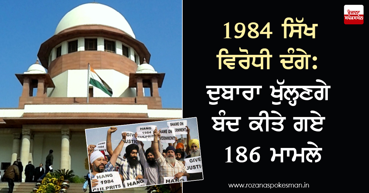 ਨਵੀਂ ਦਿੱਲੀ: 1984 ਦੇ ਸਿੱਖ ਵਿਰੋਧੀ ਦੰਗੇ ਨਾਲ ਜੁੜੇ 186 ਮਾਮਲਿਆਂ ਦੀ ਫਿਰ ਤੋਂ ਜਾਂਚ ਹੋਵੇਗੀ ਅਤੇ ਇਸਦੇ ਲਈ ਇਕ ਤਿੰਨ ਮੈਂਬਰੀ ਕਮੇਟੀ ਦਾ ਗਠਨ ਹੋਵੇਗਾ। ਸੁਪ੍ਰੀਮ ਕੋਰਟ ਨੇ ਇਹ ਨਿਰਦੇਸ਼ ਦਿੱਤਾ ਹੈ। ਇਸਤੋਂ ਪਹਿਲਾਂ ਵਿਸ਼ੇਸ਼ ਜਾਂਚ ਦਲ (ਐਸਆਈਟੀ) ਨੇ ਇਨ੍ਹਾਂ ਮਾਮਲਿਆਂ ਨੂੰ ਬੰਦ ਕਰ ਦਿੱਤਾ ਸੀ।