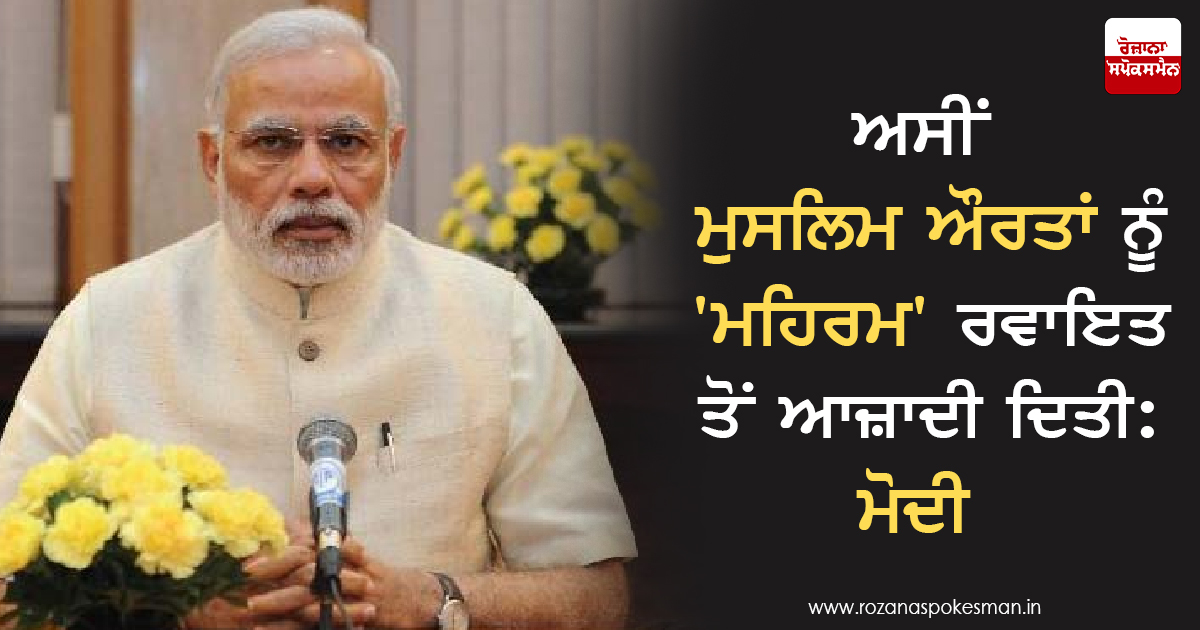 'ਮਹਿਰਮ' ਬਾਰੇ ਉਨ੍ਹਾਂ ਕਿਹਾ, 'ਸਾਡੀ ਜਾਣਕਾਰੀ ਵਿਚ ਇਕ ਗੱਲ ਆਈ ਹੈ ਕਿ ਜੇ ਕੋਈ ਮੁਸਲਿਮ ਔਰਤ, ਹੱਜ ਯਾਤਰਾ ਲਈ ਜਾਣਾ ਚਾਹੁੰਦੀ ਹੈ ਤਾਂ ਉਹ 'ਮਹਿਰਮ' ਬਿਨਾਂ ਨਹੀਂ ਜਾ ਸਕਦੀ। ਜਦ ਮੈਂ ਪਹਿਲੀ ਵਾਰ ਇਸ ਬਾਰੇ ਸੁਣਿਆ ਤਾਂ ਮੈਂ ਸੋਚਿਆ ਕਿ ਅਜਿਹਾ ਕਿਵੇਂ ਹੋ ਸਕਦਾ ਹੈ? ਅਜਿਹੇ ਨਿਯਮ ਕਿਸ ਨੇ ਬਣਾਏ ਹੋਣਗੇ। ਇਹ ਭੇਦਭਾਵ ਕਿਉਂ? ਜਦ ਮੈਂ ਡੂੰਘਾਈ ਵਿਚ ਗਿਆ ਤਾਂ ਹੈਰਾਨ ਰਹਿ ਗਿਆ ਕਿ ਆਜ਼ਾਦੀ ਮਗਰੋਂ ਵੀ ਇਹ ਪਾਬੰਦੀ ਲਾਉਣ ਵਾਲੇ ਅਸੀਂ ਹੀ ਲੋਕ ਹਾਂ।' ਮੋਦੀ ਨੇ ਕਿਹਾ, 'ਇਸਲਾਮਕ ਦੇਸ਼ਾਂ ਵਿਚ ਵੀ ਅਜਿਹਾ ਕੋਈ ਨਿਯਮ ਨਹੀਂ ਹੈ ਪਰ ਭਾਰਤ ਵਿਚ ਮੁਸਲਿਮ ਔਰਤਾਂ ਨੂੰ ਇਹ ਅਧਿਕਾਰ ਪ੍ਰਾਪਤ ਨਹੀਂ ਹੈ ਤੇ 70 ਸਾਲ ਤੋਂ ਚਲੀ ਆ ਰਹੀ ਰਵਾਇਤ ਨੂੰ ਸਾਡੀ ਸਰਕਾਰ ਨੇ ਖ਼ਤਮ ਕੀਤਾ।'