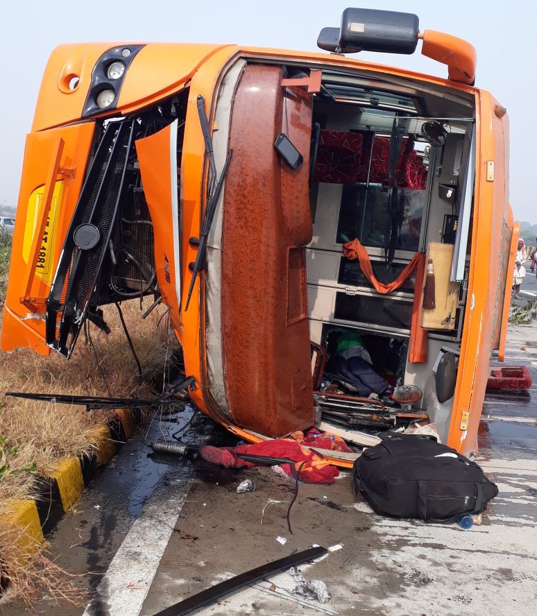 ਇਸ ਦੌਰਾਨ ਜਦੋਂ ਬੱਸ ਏਤਮਾਦਪੁਰ ਦੇ ਗੜੀ ਰਸਮੀ ਪਿੰਡ ਦੇ ਕਰੀਬ ਝਰਨਾ ਨਾਲੇ ਉੱਤੇ ਪਹੁੰਚੀ ਉਦੋਂ ਬੱਸ ਦਾ ਅਗਲਾ ਟਾਇਰ ਅਚਾਨਕ ਤੇਜ ਅਵਾਜ ਦੇ ਨਾਲ ਫਟ ਗਿਆ। ਬੱਸ ਦੀ ਰਫਤਾਰ ਤੇਜ ਹੋਣ ਦੀ ਵਜ੍ਹਾ ਨਾਲ ਡਰਾਇਵਰ ਬੱਸ ਉੱਤੇ ਕਾਬੂ ਨਹੀਂ ਕਰ ਪਾਇਆ ਅਤੇ ਬਸ ਰੋਡ ਸਾਇਡ ਰੇਲਿੰਗ ਤੋੜਦੇ ਹੋਏ ਖਾਈ ਵਿੱਚ ਜਾ ਡਿੱਗੀ।