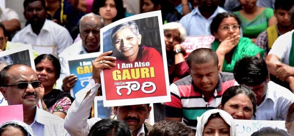 - ਗੌਰੀ ਲੰਕੇਸ਼, ਕੰਨੜ ਕਵੀ ਅਤੇ ਸੰਪਾਦਕ ਪੀ ਲੰਕੇਸ਼ ਦੀ ਸਭ ਤੋਂ ਵੱਡੀ ਧੀ ਸੀ। ਗੌਰੀ ਉੱਤੇ ਹਮਲਾਵਰਾਂ ਨੇ ਬੇਹੱਦ ਨਜਦੀਕ ਤੋਂ 7 ਰਾਉਂਡ ਫਾਇਰਿੰਗ ਕੀਤੀ ਸੀ। ਮੌਕੇ ਉੱਤੇ ਹੀ ਉਨ੍ਹਾਂ ਦੀ ਮੌਤ ਹੋ ਗਈ ਸੀ। ਉਨ੍ਹਾਂ ਨੂੰ ਪਹਿਲਾਂ ਵੀ ਜਾਨੋਂ ਮਾਰਨ ਦੀਆਂ ਧਮਕੀਆਂ ਮਿਲ ਚੁੱਕੀਆਂ ਸਨ।