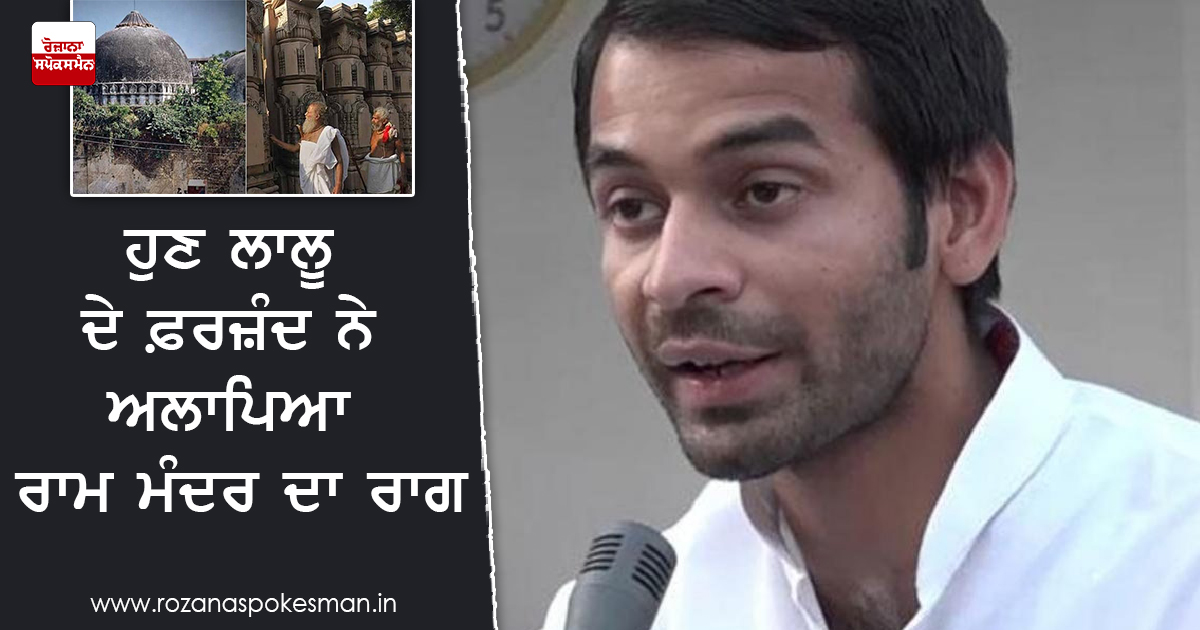 ਨਵੀਂ ਦਿੱਲੀ: ਅਯੁੱਧਿਆ ਵਿਚ ਰਾਮ ਮੰਦਰ ਬਣਾਉਣ ਦੇ ਵਿਰੋਧ 'ਚ ਆਵਾਜ਼ ਉਠਾਉਣ ਵਾਲੇ ਰਾਸ਼ਟਰੀ ਜਨਤਾ ਦਲ (ਆਰਜੇਡੀ) ਮੁਖੀ ਲਾਲੂ ਪ੍ਰਸਾਦ ਯਾਦਵ ਦੇ ਬੇਟੇ ਅਤੇ ਸਾਬਕਾ ਮੰਤਰੀ ਤੇਜ ਪ੍ਰਤਾਪ ਨੇ ਹੈਰਾਨ ਕਰਨ ਵਾਲਾ ਬਿਆਨ ਦਿਤਾ ਹੈ। ਤੇਜ ਪ੍ਰਤਾਪ ਯਾਦਵ ਨੇ ਮੁੱਖ ਮੰਤਰੀ ਨਿਤੀਸ਼ ਕੁਮਾਰ ਦੇ ਘਰ ਜ਼ਿਲ੍ਹਾ ਨਾਲੰਦਾ ਦੀ ਇਕ ਸਭਾ ਵਿਚ ਕਿਹਾ ਕਿ ਉਹ ਅਯੁੱਧਿਆ ਵਿਚ ਰਾਮ ਮੰਦਰ ਦੀ ਉਸਾਰੀ ਕਰਨਗੇ।