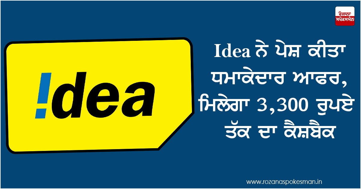 ਟੈਲੀਕਾਮ ਆਪਰੇਟਰ ਕੰਪਨੀ ਆਈਡੀਆ ਨੇ ਆਪਣੇ ਪ੍ਰੀਪੇਡ ਯੂਜ਼ਰਸ ਲਈ ਕੈਸ਼ਬੈਕ ਆਫਰ ਪੇਸ਼ ਕੀਤਾ ਹੈ। ਕੰਪਨੀ ਨੇ ਇਹ ਆਫਰ 'Magic Cashback' ਦੇ ਨਾਂ ਤੋਂ ਪੇਸ਼ ਕੀਤਾ ਹੈ। ਮੈਜਿਕ ਕੈਸ਼ਬੈਕ ਆਫਰ ਦੇ ਤਹਿਤ ਯੂਜ਼ਰਸ ਨੂੰ 3,300 ਰੁਪਏ ਤੱਕ ਦਾ ਕੈਸ਼ਬੈਕ ਮਿਲੇਗਾ। ਦੱਸ ਦਈਏ ਕਿ ਇਹ ਆਫਰ ਖਾਸ ਕਰਕੇ ਉਨ੍ਹਾਂ ਰਾਹੀਂ ਰਿਚਾਰਜ ਕਰਾਉਂਦੇ ਹਨ। ਇਹ ਆਫਰ 18 ਜਨਵਰੀ ਤੋਂ 10 ਫਰਵਰੀ ਤੱਕ ਜਾਰੀ ਰਹੇਗਾ।