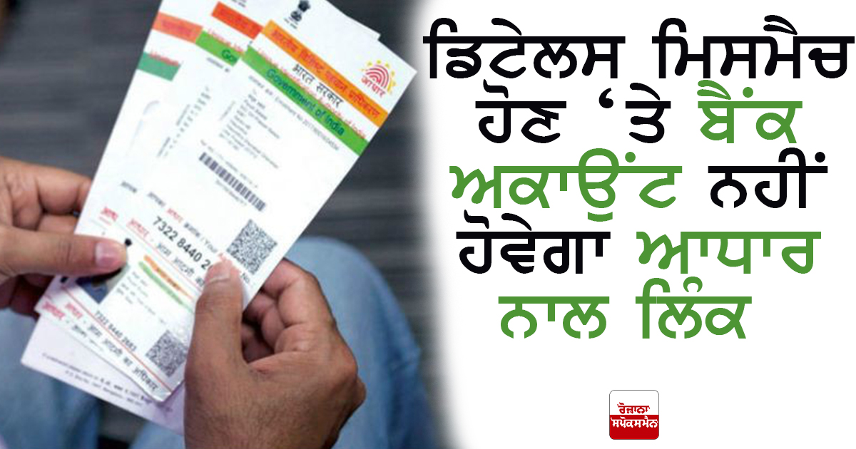 ਲੋਕ ਚਾਹੁੰਦੇ ਹੋਏ ਵੀ ਆਧਾਰ ਨੂੰ ਬੈਂਕ ਅਕਾਉਂਟ ਨਾਲ ਲਿੰਕ ਨਹੀਂ ਕਰਾ ਪਾ ਰਹੇ ਹਾਂ। ਲਿੰਕਿੰਗ ਫੇਲ ਹੋਣ ਦੀ ਵਜ੍ਹਾ ਹੈ ਤੁਹਾਡੇ ਬੈਂਕ ਅਕਾਉਂਟ ਵਿੱਚ ਮੌਜੂਦ ਡਿਟੇਲਸ ਅਤੇ ਆਧਾਰ ਉੱਤੇ ਮੌਜੂਦ ਡਿਟੇਲਸ ਦਾ ਮੈਚ ਨਾ ਹੋਣਾ। ਦੱਸਦੇ ਹਾਂ ਕਿ ਕਿਹੜੀ ਡਿਟੇਲਸ ਮਿਸਮੈਚ ਹੋਣ ਉੱਤੇ ਅਕਾਉਂਟ ਨਾਲ ਆਧਾਰ ਲਿੰਕਿੰਗ ਫੇਲ ਹੋ ਰਹੀ ਹੈ ਅਤੇ ਇਸਦੇ ਲਈ ਕੀ ਕਰਨਾ ਹੋਵੇਗਾ।