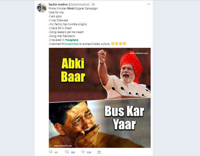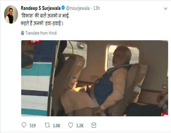 ਮੋਦੀ ਜੇਕਰ ਸੀ - ਪਲੇਨ ਵਿੱਚ ਉੱਡਣਾ ਚਾਹੁੰਦੇ ਹਨ ਤਾਂ ਚੰਗੀ ਗੱਲ ਹੈ ਪਰ ਸਵਾਲ ਹੈ ਕਿ ਗੁਜਰਾਤ ਦੀ ਜਨਤਾ ਲਈ ਉਨ੍ਹਾਂ ਨੇ ਕੀ ਕੀਤਾ। ਇੱਥੇ ਦੇ 30 ਲੱਖ ਲੋਕ ਬੇਰੁਜਗਾਰ ਹਨ। ਮੰਦਿਰਾਂ 'ਚ ਮੈਂ ਗੁਜਰਾਤ ਦੀ ਜਨਤਾ ਦੇ ਬਿਹਤਰ ਭਵਿੱਖ ਦੀ ਕਾਮਨਾ ਕੀਤੀ ਹੈ।