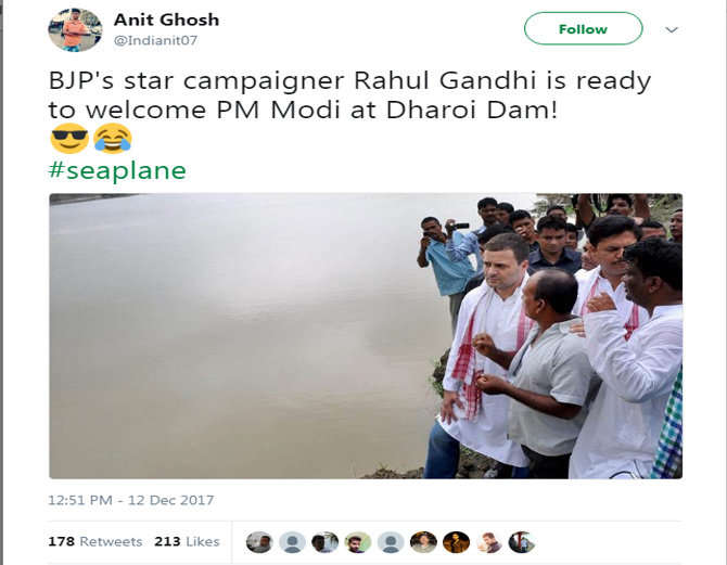 ਭਾਜਪਾ ਬੁਲਾਰੇ ਸੰਬਿਤ ਪਾਤਰਾ ਨੇ ਕਿਹਾ, “ਇਹ ਸਧਾਰਨ ਫਲਾਇਟ ਨਹੀਂ, ਗੁਜਰਾਤ ਵਿੱਚ ਵਿਕਾਸ ਦਾ ਨੁਮਾਇਸ਼ ਹੈ। ’ ਇਸ ਉੱਤੇ ਕਾਂਗਰਸ ਬੁਲਾਰੇ ਰਣਦੀਪ ਸਿੰਘ ਸੁਰਜੇਵਾਲਾ ਨੇ ਕਿਹਾ, ‘ਵਿਕਾਸ ਦੀਆਂ ਗੱਲਾਂ ਉਨ੍ਹਾਂ ਨੂੰ ਨਹੀਂ ਭਾਈਆਂ , ਕਹਿੰਦੇ ਹਨ ਉਨ੍ਹਾਂ ਨੂੰ ਹਵਾ - ਹਵਾਈ। ਗੁਜਰਾਤ ਦੀ ਜਨਤਾ ਪ੍ਰੇਸ਼ਾਨ , ਉੱਤੇ ਮੇਰਾ ਜੀਵਨ ਤਾਂ ਆਲੀਸ਼ਾਨ । ’