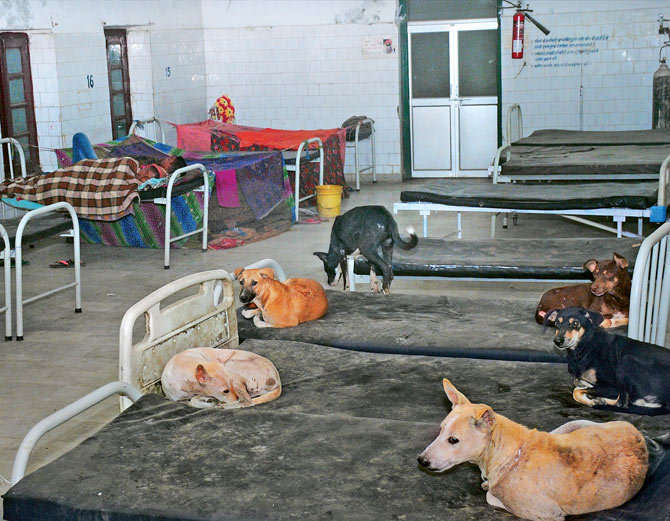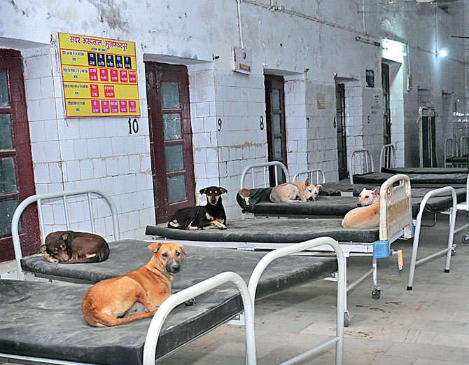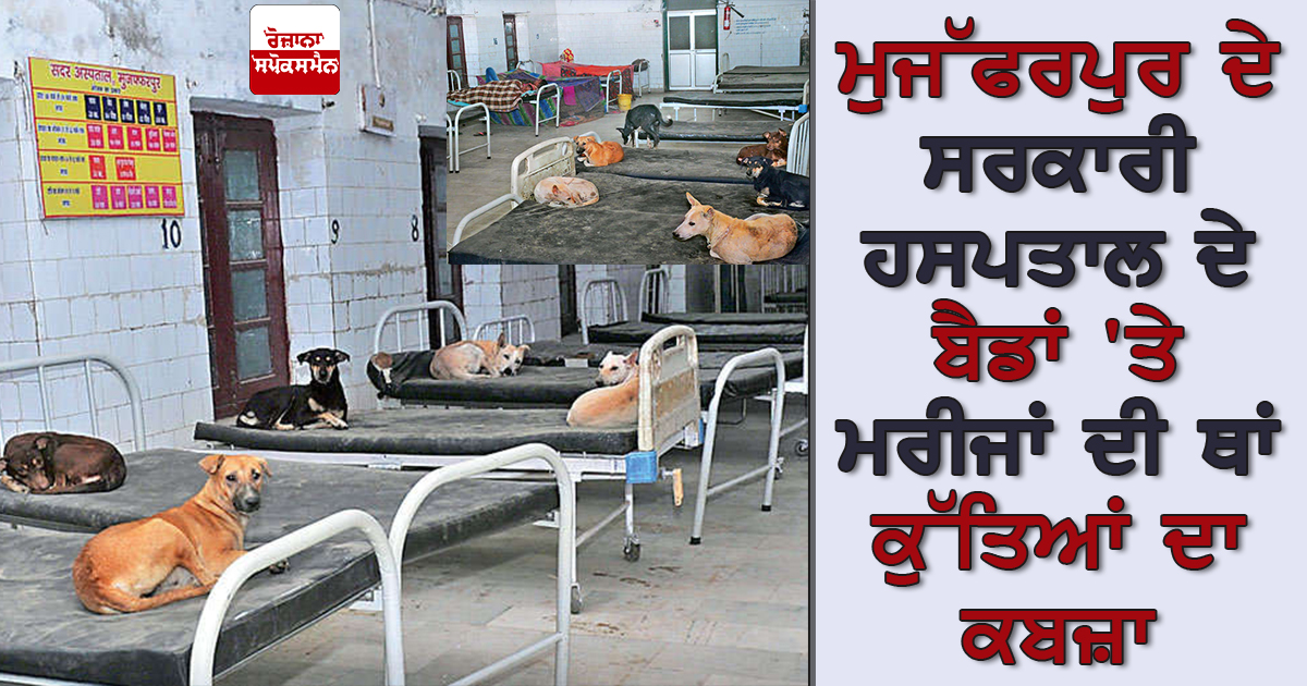 ਮੁਜੱਫਰਪੁਰ: ਇੱਥੋਂ ਦੇ ਸਦਰ ਹਸਪਤਾਲ ਦੇ ਸਰਜੀਕਲ ਵਾਰਡ ਵਿੱਚ ਰਾਤ ਹੁੰਦੇ ਹੀ ਮਰੀਜ ਦੇ ਬੈਡ ਉੱਤੇ ਅਵਾਰਾ ਕੁੱਤਿਆਂ ਦਾ ਆਤੰਕ ਮੱਚ ਜਾਂਦਾ ਹੈ। ਬੈਡ ਉੱਤੇ ਮਰੀਜ ਦੀ ਜਗ੍ਹਾ ਕੁੱਤੇ ਆਰਾਮ ਕਰਦੇ ਹਨ। ਹਾਲਾਂਕਿ, ਵਾਰਡ ਵਿੱਚ ਮਰੀਜ ਵੀ ਐਡਮਿਟ ਹਨ। ਪਰ ਰਾਤ ਹੁੰਦੇ ਹੀ ਦਰਜਨ ਭਰ ਤੋਂ ਜਿਆਦਾ ਕੁੱਤੇ ਵਾਰਡ ਵਿੱਚ ਵੜ ਕੇ ਬੈਡ ਉੱਤੇ ਚੜ੍ਹ ਜਾਂਦੇ ਹਨ। ਕੱਟਣ ਦੇ ਡਰ ਨਾਲ ਮਰੀਜ ਜਾਂ ਉਨ੍ਹਾਂ ਦੇ ਪਰਿਵਾਰ ਵਾਲੇ ਕੁੱਤਿਆਂ ਨੂੰ ਭਜਾਉਣ ਦੀ ਵੀ ਹਿੰਮਤ ਨਹੀਂ ਵਿਖਾ ਪਾਉਂਦੇ। ਪਰਿਵਾਰ ਵਾਲਿਆਂ ਨੂੰ ਰਾਤ ਵਿੱਚ ਜਾਗ ਕੇ ਮਰੀਜਾਂ ਦੀ ਸੁਰੱਖਿਆ ਕਰਨੀ ਪੈਂਦੀ ਹੈ। ਠੰਡ ਲੱਗਣ ਉੱਤੇ ਕਈ ਵਾਰ ਤਾਂ ਕੁੱਤੇ ਬੈਡ ਉੱਤੇ ਸੁੱਤੇ ਮਰੀਜਾਂ ਦੇ ਬਿਸਤਰੇ ਵਿੱਚ ਵੜ ਜਾਂਦੇ ਹਨ।