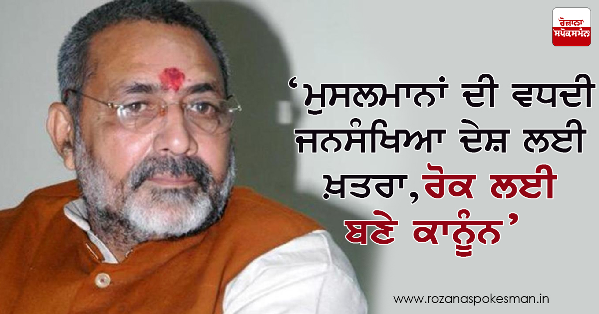 ਦੇਸ਼ ਦੇ ਮੁਸਲਮਾਨ BJP ਸਰਕਾਰ ਲਈ ਕਿਰਕਿਰੀ ਬਣੇ ਹੋਏ ਹਨ। BJP ਸੰਸਦ, ਵਿਧਾਇਕ ਅਤੇ ਮੰਤਰੀ ਮੁਸਲਮਾਨਾਂ ਨੂੰ ਲੈ ਕੇ ਅਸ਼ਲੀਲ ਬਿਆਨ ਲਗਾਤਾਰ ਜਾਰੀ ਕਰ ਰਹੇ ਹਨ ਜਿਸ 'ਤੇ ਪ੍ਰਧਾਨਮੰਤਰੀ ਮੋਦੀ ਸਮੇਤ ਗ੍ਰਹਿ ਮੰਤਰਾਲਾ ਚੁੱਪੀ ਸਾਧੇ ਬੈਠਾ ਹੈ। ਹਾਲਿਆ ਬਿਆਨ ਵਿਚ ਕੇਂਦਰੀ ਮੰਤਰੀ ਗਿਰੀਰਾਜ ਸਿੰਘ ਨੇ ਮੁਸਲਮਾਨਾਂ ਨੂੰ ਦੇਸ਼ ਲਈ ਖ਼ਤਰਾ ਦੱਸਿਆ ਹੈ ਅਤੇ ਇਸਨੂੰ ਰੋਕਣ ਲਈ ਕਾਨੂੰਨ ਬਣਾਉਣ ਦੀ ਮੰਗ ਕੀਤੀ ਹੈ।
