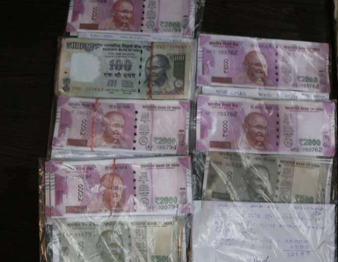 - ਗ੍ਰਿਫਤ ਵਿੱਚ ਆਏ ਦੋਸ਼ੀ ਨਰਿੰਦਰ ਦੀ ਤਲਾਸ਼ੀ ਲੈਣ ਉੱਤੇ ਉਸਦੇ ਕੋਲੋਂ 2 ਹਜਾਰ ਦੇ 15 ਨੋਟ ਅਤੇ 500 ਦੇ 5 ਨੋਟ ਮਿਲੇ। ਉਥੇ ਹੀ ਰਾਜੇਸ਼ ਦੇ ਕੋਲੋਂ 2000 ਦੇ 12 ਨੋਟ ਅਤੇ ਪੰਜ ਸੌ ਦੇ 3 ਨੋਟ ਮਿਲੇ। ਤੀਸਰੇ ਸਾਥੀ ਚੰਦਰਸ਼ੇਖਰ ਦੀ ਤਲਾਸ਼ੀ ਲੈਣ ਉੱਤੇ ਉਸਦੇ ਕੋਲੋਂ 2000 ਦੇ 20 ਨੋਟ ਅਤੇ 500 ਦੇ 4 ਨੋਟ ਬਰਾਮਦ ਕੀਤੇ।