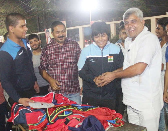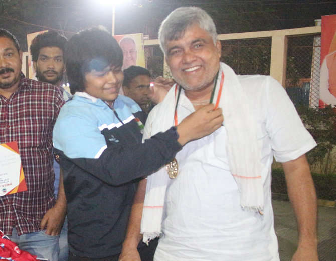 ਇੰਦੌਰ: ਸੀਨੀਅਰ ਨੈਸ਼ਨਲ ਰੈਸਲਿੰਗ ਵਿੱਚ ਦਿਵਿਆ ਕਾਕਰਾਨ ਨੇ 68 ਕੇਜੀ ਵਿੱਚ ਗੋਲਡ ਜਿੱਤਿਆ। ਜਦੋਂ ਉਹ ਅੰਦਰ ਬਾਉਟ ਲੜ ਰਹੀ ਸੀ, ਉਨ੍ਹਾਂ ਦੇ ਪਾਪਾ ਸੂਰਜ ਕਾਕਰਾਨ ਬਾਹਰ ਰੈਸਲਰਸ ਦੇ ਕੱਪੜੇ ਵੇਚ ਰਹੇ ਸਨ। ਦਿਵਿਆ ਬਾਹਰ ਗਈ ਅਤੇ ਪਿਤਾ ਦੇ ਗਲੇ ਵਿੱਚ ਗੋਲਡ ਪਾ ਦਿੱਤਾ।