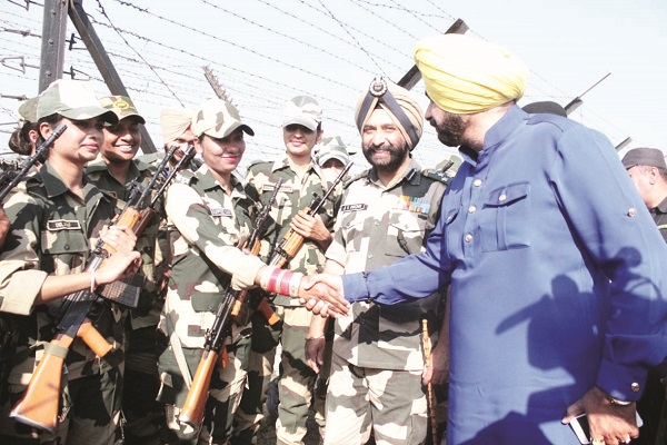 ਇਸ ਮੌਕੇ ਸ. ਸਿੱਧੂ ਨੇ ਫਲਾਂ ਦਾ ਟੋਕਰਾ ਵੀ ਭੇਂਟ ਕੀਤਾ। ਉਨ੍ਹਾਂ ਨੇ ਮਹਿਲਾ ਕਾਂਸਟੇਬਲਾਂ ਨਾਲ ਮੁਲਾਕਾਤ ਕਰਦਿਆਂ ਉਨ੍ਹਾਂ ਦੀ ਬਹਾਦਰੀ ਦੀ ਪ੍ਰਸ਼ੰਸਾ ਕੀਤੀ। ਸ. ਸਿੱਧੂ ਨੇ ਕਿਹਾ ਕਿ ਇਹ ਲੜਕੀਆਂ ਰਾਸ਼ਟਰ ਦਾ ਮਾਣ ਹਨ ਅਤੇ ਅੱਜ ਮਹਿਲਾ ਦਿਵਸ ਮੌਕੇ ਮੈਂ ਉਨ੍ਹਾਂ ਨੂੰ ਸਲਾਮ ਕਰਦਾ ਹਾਂ ਅਤੇ ਜਿਸ ਢੰਗ ਨਾਲ ਉਹ ਅਪਣੀ ਪ੍ਰਤੀਬੱਧਤਾ ਨਾਲ ਅਪਣੀ ਜ਼ਿੰਮੇਵਾਰੀ ਨਿਭਾਉਂਦੀਆਂ ਹਨ ਜਿਸ ਕਰ ਕੇ ਅਸੀਂ ਅਪਣੇ ਘਰਾਂ ਵਿਚ ਸੁਰੱਖਿਅਤ ਰਹਿੰਦੇ ਹਾਂ। ਬੀ ਐਸ ਐਫ਼ ਦੀਆਂ ਮਹਿਲਾ ਸੈਨਿਕਾਂ ਨਾਲ ਗੱਲਬਾਤ ਕਰਦਿਆਂ ਸ. ਸੱਧੂ ਨੇ ਉਨ੍ਹਾਂ ਦੇ ਪ੍ਰੇਰਨਾ ਬਾਰੇ ਪੁੱਛੇ ਜਾਣ 'ਤੇ ਮਹਿਲਾ ਸੈਨਿਕਾਂ ਨੇ ਕਿਹਾ ਕਿ ਉਹ ਸਮੂਹ ਚੁਨੌਤੀਆਂ ਦਾ ਸਾਹਮਣਾ ਕਰ ਰਹੀਆਂ ਹਨ। ਬੈਰਲ ਦਾ ਸਾਹਮਣਾ ਵੀ ਕਰਦੀਆਂ ਜੋ ਕਿ ਮਹਿਲਾ ਸ਼ਕਤੀਕਰਨ ਦੀ ਸੱਭ ਤੋਂ ਵਧੀਆ ਮਿਸਾਲ ਹੈ ਅਤੇ ਸਰਹੱਦ 'ਤੇ ਦੁਸ਼ਮਣ ਵਲੋਂ ਕਿਸੇ ਵੀ ਤਰ੍ਹਾਂ ਹਰਕਤ ਦਾ ਜਵਾਬ ਦੇਣ ਲਈ ਅਸੀਂ ਸਮਰੱਥ ਹਾਂ।