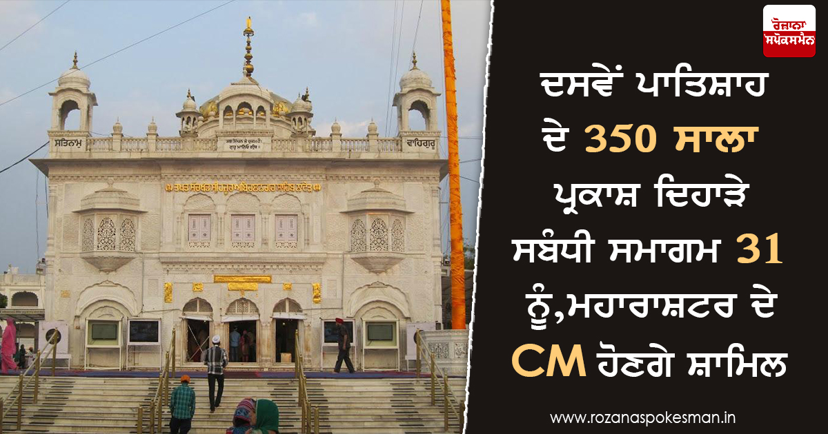 ਨਾਂਦੇੜ: ਸ੍ਰੀ ਗੁਰੂ ਗੋਬਿੰਦ ਸਿੰਘ ਜੀ ਦੇ 350 ਸਾਲਾ ਪ੍ਰਕਾਸ਼ ਦਿਹਾੜੇ ਸਬੰਧੀ ਇਥੇ 31 ਦਸੰਬਰ ਨੂੰ ਕਰਵਾਏ ਜਾ ਰਹੇ ਸਮਾਗਮ ਵਿਚ ਹੋਰਨਾਂ ਸ਼ਖਸੀਅਤਾਂ ਦੇ ਇਲਾਵਾ ਮਹਾਰਾਸ਼ਟਰ ਦੇ ਮੁੱਖ ਮੰਤਰੀ ਦੇਵੇਂਦਰ ਫੜਨਵੀਸ ਵੀ ਸ਼ਾਮਿਲ ਹੋਣਗੇ।