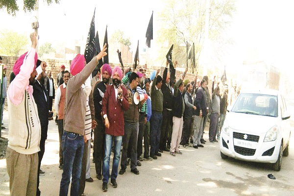 ਬਠਿੰਡਾ, 3 ਫ਼ਰਵਰੀ (ਵਿਕਾਸ ਕੋਸ਼ਲ): ਸਥਾਨਕ ਗੁਰੂ ਨਾਨਕ ਦੇਵ ਥਰਮਲ ਪਲਾਂਟ ਨੂੰ ਬੰਦ ਕਰਨ ਵਿਰੁਧ ਭੜਕੇ ਥਰਮਲ ਦੇ ਕੱਚੇ-ਪੱਕੇ ਕਾਮਿਆਂ ਦਾ ਗੁੱਸਾ ਸ਼ਾਂਤ ਹੋਣ ਦਾ ਨਾਮ ਨਹੀਂ ਲੈ ਰਿਹਾ। ਬਠਿੰਡਾ ਪੁੱਜਣ 'ਤੇ ਵਿਤ ਮੰਤਰੀ ਦੇ ਘਿਰਾਉ ਦੇ ਕੀਤੇ ਐਲਾਨ ਤਹਿਤ ਅੱਜ ਥਰਮਲ ਦੇ ਕੱਚੇ ਅਤੇ ਪੱਕੇ ਮੁਲਾਜ਼ਮਾਂ ਨੇ ਉਨ੍ਹਾਂ ਨੂੰ ਵਕਤ 'ਚ ਪਾਈ ਰਖਿਆ। ਦੋਹਾਂ ਧਿਰਾਂ ਵਲੋਂ ਮਿਲ ਕੇ ਉਨ੍ਹਾਂ ਦਾ ਸ਼ਹਿਰ 'ਚ ਦੋ ਥਾਂ ਘਿਰਾਉ ਕੀਤਾ ਗਿਆ। ਅਪਣੇ ਇਕ ਪ੍ਰੋਗਰਾਮ ਤਹਿਤ ਧੋਬੀਆਣਾ ਨਗਰ ਗਲੀ ਨੰ 5 ਵਿਚ ਪੁੱਜੇ ਵਿਤ ਮੰਤਰੀ ਦਾ ਬਿਜਲੀ ਕਾਮਿਆਂ ਵਲੋਂ ਕਾਲੀਆਂ ਝੰਡੀਆਂ ਨਾਲ ਨਾਹਰੇਬਾਜ਼ੀ ਕਰ ਕੇ ਸਵਾਗਤ ਕੀਤਾ ਗਿਆ। ਉਸ ਤੋਂ ਬਾਅਦ ਜਦੋਂ ਵਿਸ਼ਾਲ ਨਗਰ ਵਿਚ ਵਿੱਤ ਮੰਤਰੀ ਪਹੁੰਚੇ ਤਾਂ ਥਰਮਲ ਪਲਾਂਟ ਦੇ ਕੱਚੇ ਕਾਮੇ ਪਰਵਾਰਾਂ ਅਤੇ ਬੱਚਿਆਂ ਸਮੇਤ ਉਥੇ ਪਹੁੰਚ ਗਏ। ਜਦੋਂ ਕਿ ਉਥੇ ਪਹੁੰਚਣ ਸਾਰ ਵੱਡੀ ਗਿਣਤੀ ਵਿਚ ਪੁਲਿਸ ਪ੍ਰਸਾਸ਼ਨ ਵਲੋਂ ਰੋਕਾਂ ਲਾ ਕੇ ਕਾਮਿਆਂ ਨੂੰ ਰੋਕਣ ਦੀ ਕੋਸ਼ਿਸ਼ ਕੀਤੀ ਗਈ। ਥੋੜ੍ਹਾ ਸਮਾਂ ਖਿਚਾਤਾਣ ਹੋਣ ਤੋਂ ਬਾਅਦ ਕਾਮਿਆਂ ਵਲੋਂ ਕਾਲੇ ਝੰਡੇ ਦਿਖਾਉਂਦੇ ਹੋਏ ਵਿੱਤ ਮੰਤਰੀ ਵਿਰੁਧ ਨਾਹਰੇਬਾਜ਼ੀ ਕੀਤੀ।