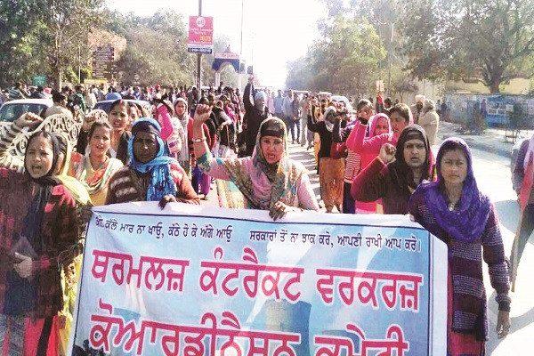 ਬਠਿੰਡਾ, 2 ਫ਼ਰਵਰੀ (ਵਿਕਾਸ ਕੋਸ਼ਲ) : ਥਰਮਲ ਦੇ ਕੱਚੇ ਮੁਲਾਜ਼ਮਾਂ ਦਾ ਪੱਕਾ ਮੋਰਚਾ ਅੱਜ 33ਵੇਂ ਦਿਨ ਵੀ ਲਗਾਤਾਰ ਜਾਰੀ ਹੈ। ਪਾਵਰਕਾਮ ਵਲੋਂ ਸਮਝੌਤਾ ਹੋਣ ਸਬੰਧੀ ਕੋਈ ਸੁਨੇਹਾ ਨਾ ਆਉਣ ਦੇ ਚਲਦੇ ਅੱਜ ਕੱਚੇ ਕਾਮਿਆਂ ਵਲੋਂ ਸ਼ਹਿਰ 'ਚ ਰੋਸ ਮਾਰਚ ਕੱਢਿਆ ਗਿਆ। ਮੋਰਚੇ ਦੇ ਕਨਵੀਨਰ ਰਾਜਿੰਦਰ ਸਿੰਘ ਢਿੱਲੋਂ ਨੇ ਪ੍ਰੈਸ ਨੂੰ ਬਿਆਨ ਜਾਰੀ ਕਰਦਿਆਂ ਕਿਹਾ ਪੀ.ਐਸ.ਪੀ.ਸੀ. ਦੀ ਮੈਨੇਜਮੈਟ ਮਸਲੇ ਦਾ ਹੱਲ ਕਰਨ ਦੀ ਬਜਾਏ ਲਮਕਾ ਰਹੀ ਹੈ, ਜਿਸ ਦਾ ਸੰਘਰਸ਼ ਕਰ ਰਹੇ ਥਰਮਲ ਦੇ ਕੱਚੇ ਕਾਮਿਆਂ ਵਿਚ ਕਾਫੀ ਰੋਸ ਪਾਇਆ ਜਾ ਰਿਹਾ ਹੈ। ਇਸ ਸਮੇਂ ਕਮੇਟੀ ਮੈਂਬਰ ਅਸ਼ਵਨੀ ਕੁਮਾਰ, ਵਿਜੈ ਕੁਮਾਰ, ਗੁਰਵਿੰਦਰ ਸਿਘ ਪੰਨੂ ਨੇ ਜਾਣਕਾਰੀ ਦਿੰਦੇ ਦਸਿਆ ਕਿ ਪੀ.ਐਸ.ਪੀ.ਸੀ. ਐਲ ਦੀ ਮੈਨਜਮੈਂਟ ਵਾਰ-ਵਾਰ ਗੱਲਬਾਤ ਤਾਂ ਕਰ ਰਹੀ ਹੈ ਪਰ ਲਿਖਤੀ ਮਸਲੇ ਦਾ ਹੱਲ ਕਰਨੋ ਲਮਕਾ ਰਹੀ ਹੈ,