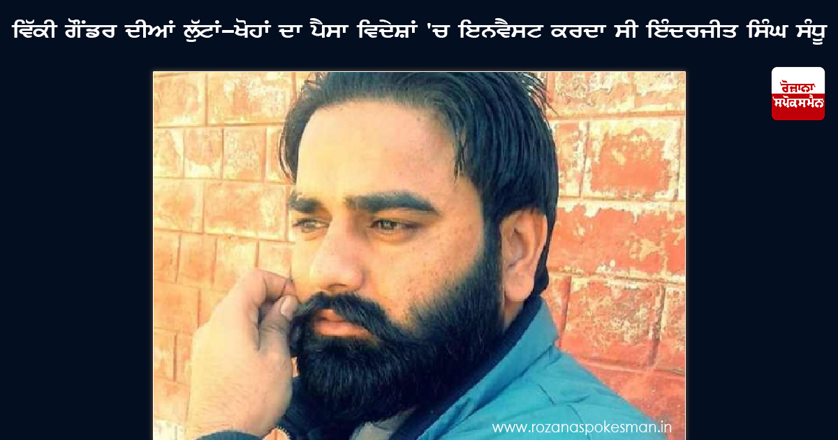 ਪਟਿਆਲਾ: ਸੀ. ਆਈ. ਏ. ਸਟਾਫ ਪਟਿਆਲਾ-2 ਦੀ ਪੁਲਿਸ ਵੱਲੋਂ ਦਿੱਲੀ ਦੀ ਇੰਦਰਾ ਗਾਂਧੀ ਇੰਟਰਨੈਸ਼ਨਲ ਏਅਰਪੋਰਟ ਤੋਂ ਗ੍ਰਿਫਤਾਰ ਕੀਤੇ ਗਏ ਇੰਦਰਜੀਤ ਸਿੰਘ ਸੰਧੂ ਨੇ ਪੁੱਛਗਿੱਛ ਦੌਰਾਨ ਮੰਨਿਆ ਕਿ ਵਿੱਕੀ ਗੌਂਡਰ ਦਾ ਫਿਰੌਤੀਆਂ ਅਤੇ ਲੁੱਟਾਂ-ਖੋਹਾਂ ਦਾ ਜੋ ਪੈਸਾ ਹੁੰਦਾ ਸੀ, ਉਹ ਜਾਰਡਨ ਅਤੇ ਹੋਰ ਦੇਸ਼ਾਂ 'ਚ ਇਨਵੈਸਟ ਕਰਦਾ ਸੀ। ਇਥੋਂ ਉਹ ਇਹ ਪੈਸਾ ਬਾਹਰ ਵੀ ਭੇਜਦਾ ਸੀ। ਬਾਹਰ ਤੋਂ ਹਵਾਲੇ ਰਾਹੀਂ ਪੈਸਾ ਇਥੇ ਵੀ ਭੇਜਦਾ ਸੀ।