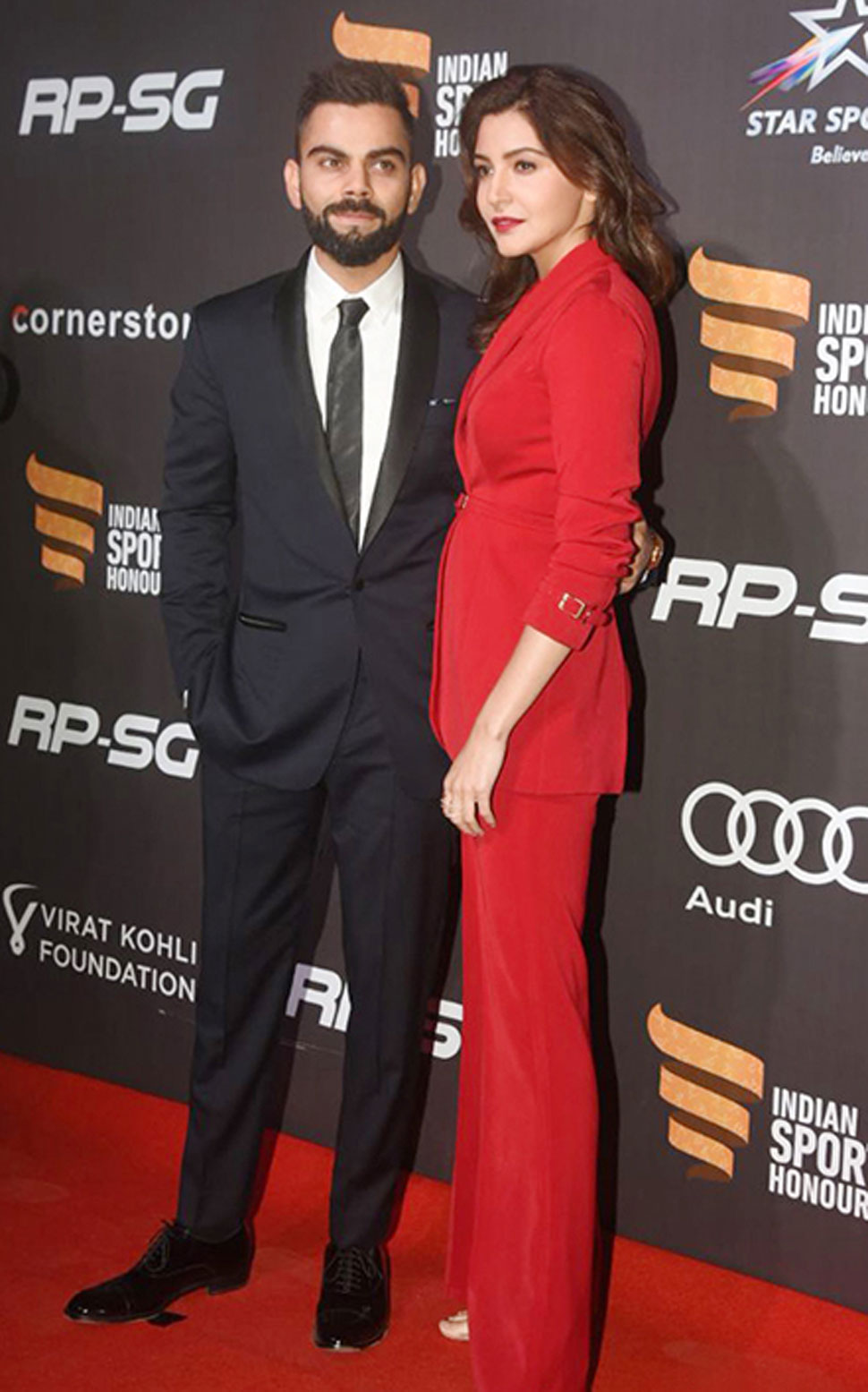 ਕੈਪਟਨ ਕੋਹਲੀ ਨੇ ਜੋ ਤਸਵੀਰ ਇਸ ਸਮੇਂ ਲਗਾਈ ਹੈ ਉਹ 11 ਨਵੰਬਰ ਨੂੰ ਆਯੋਜਿਤ ਹੋਏ ਇੰਡੀਅਨ ਸਪੋਰਟਸ ਆਨਰਸ ਅਵਾਰਡਸ ਦੀ ਹੈ। ਇਸ ਫੰਕਸ਼ਨ ਵਿੱਚ ਜਦੋਂ ਇਹ ਕਿਊਟ ਕਪਲ ਰੈਡ ਕਾਰਪੇਟ ਉੱਤੇ ਉਤਰਿਆ ਸੀ, ਤੱਦ ਉਸ ਸਮੇਂ ਉੱਥੇ ਮੌਜੂਦ ਸਾਰੇ ਲੋਕਾਂ ਦੀਆਂ ਨਜਰਾਂ ਉਨ੍ਹਾਂ ਉੱਤੇ ਟਿਕ ਗਈਆਂ ਸਨ। ਇਸ ਕਿਊਟ ਜੋੜੀ ਦੇ ਖੂਬਸੂਰਤ ਅੰਦਾਜ ਨੂੰ ਸਾਰੇ ਵੇਖਦੇ ਰਹਿ ਗਏ ਸਨ। ਅਨੁਸ਼ਕਾ ਨੇ ਰੈਡ ਪੇਂਟਸੂਟ ਪਾਇਆ ਸੀ ਅਤੇ ਕੋਹਲੀ ਨੇ ਬਲੂ ਸੂਟ। ਜਿਵੇਂ ਹੀ ਦੋਨਾਂ ਦੀ ਝਲਕ ਲੋਕਾਂ ਨੇ ਵੇਖੀ , ਇਸ ਜੋੜੀ ਦੇ ਪ੍ਰਸ਼ੰਸਕ ਤਾਂ ਜਿਵੇਂ ਮਾਰੇ ਖੁਸ਼ੀ ਨਾਲ ਕੁੱਦਣ ਲੱਗੇ।
