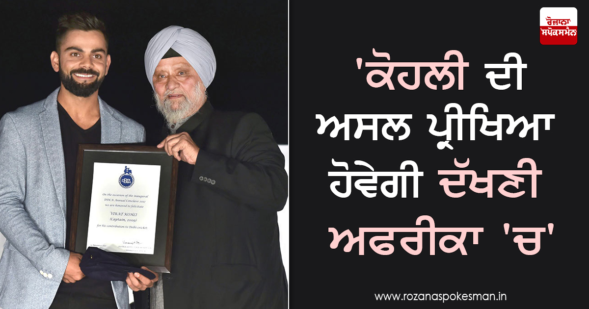 ਮਹਾਨ ਸਪਿਨਰ ਬਿਸ਼ਨ ਸਿੰਘ ਬੇਦੀ ਦਾ ਮੰਨਣਾ ਹੈ ਕਿ ਭਾਰਤੀ ਕਪਤਾਨ ਵਿਰਾਟ ਕੋਹਲੀ ਦੀ ਬੱਲੇਬਾਜ਼ੀ ਅਤੇ ਕਪਤਾਨੀ ਦੀ ਅਸਲ ਪ੍ਰੀਖਿਆ ਦੱਖਣ ਅਫਰੀਕਾ ਵਿੱਚ ਹੋਵੇਗੀ। ਬੇਦੀ ਨੇ ਅੰਤਰਰਾਸ਼ਟਰੀ ਪੱਧਰ ਉੱਤੇ ਸਿਖਰਲੇ ਖਿਡਾਰੀਆਂ ਦੇ ਖਿਲਾਫ ਲਗਾਤਾਰ ਸਫਲਤਾ ਲਈ ਬੈਡਮਿੰਟਨ ਖਿਡਾਰਨ ਪੀ ਵੀ ਸਿੰਧੂ ਦੀ ਤਾਰੀਫ ਕੀਤੀ ਪਰ ਕਿਹਾ ਕਿ ਓਲੰਪਿਕ 'ਚ ਚਾਂਦੀ ਦਾ ਤਗਮਾ ਜੇਤੂ ਸਿੰਧੂ ਇਨ੍ਹੇ ਸਾਲ ਤੋਂ ਜੋ ਹਾਸਲ ਕਰ ਰਹੀ ਹੈ, ਉਸਨੂੰ ਹਾਸਲ ਕਰਨ ਲਈ ਕੋਹਲੀ ਨੂੰ ਸੰਘਰਸ਼ ਕਰਨਾ ਹੋਵੇਗਾ।