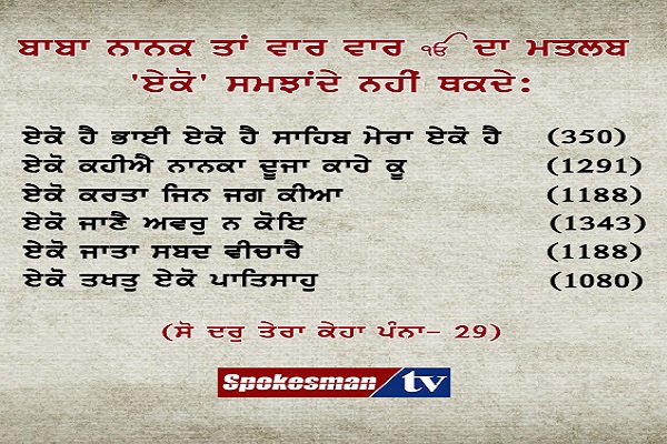 - ਏਕੋ ਕਹੀਐ ਨਾਨਕਾ ਦੂਜਾ ਕਾਹੇ ਕੂ (1291)