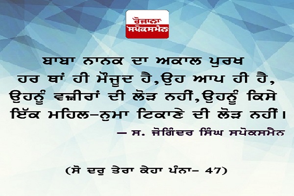 ''ਨੋਟ: (ਪ੍ਰਭੂ ਦੀ ਵਡਿਆਈ ਹੁਣ ਇਕ ਦਰਬਾਰ ਰਚ ਕੇ ਦੱਸੀ ਹੈ ਜਿਸ ਦਰਬਾਰ ਵਿਚ ਮਨੁੱਖੀ ਤਜਰਬੇ ਵਿਚ ਆਈਆਂ ਧਰਤ ਅਸਮਾਨ ਦੀਆਂ ਸਾਰੀਆਂ ਤਾਕਤਾਂ ਪ੍ਰਭੂ ਦੇ ਉਸ ਦਰਬਾਰ ਵਿਚ ਖੜੋ ਕੇ ਉਸ ਦੇ ਗੁਣ ਗਾਉਂਦੀਆਂ ਵਿਖਾਈਆਂ ਹਨ। ਇਹ ਸਾਰੇ ਉਸ ਦੀ ਬੇਅੰਤ ਰਜ਼ਾ ਵਿਚ ਨੱਥੇ ਹੋਏ ਉਸ ਦੇ ਹੁਕਮ ਵਿਚ ਚਲ ਰਹੇ ਹਨ, ਇਸ ਲਈ ਹਰੇਕ ਜੀਵ ਨੂੰ ਉਸ ਦੀ ਰਜ਼ਾ ਵਿਚ ਰਹਿਣਾ ਹੀ ਫਬਦਾ ਹੈ।)'' ਬਾਬਾ ਨਾਨਕ ਦਾ ਅਕਾਲ ਪੁਰਖ ਹਰ ਥਾਂ ਹੀ ਮੌਜੂਦ ਹੈ, ਉਹ ਆਪ ਹੀ ਆਪ ਹੈ, ਉਹਨੂੰ ਵਜ਼ੀਰਾਂ ਦੀ ਲੋੜ ਨਹੀਂ, ਉਹਨੂੰ ਕਿਸੇ ਇਕ ਮਹਿਲ-ਨੁਮਾ ਟਿਕਾਣੇ ਦੀ ਲੋੜ ਨਹੀਂ ਪਰ ਅਸੀ ਕਿਉਂਕਿ ਜਗਿਆਸੂਆਂ ਦੇ ਸਵਾਲਾਂ ਨੂੰ ਬਾਬੇ ਨਾਨਕ ਦਾ ਬਿਆਨ ਮੰਨ ਕੇ ਚਲਣ ਦੇ ਆਦੀ ਹੋ ਗਏ ਹਾਂ, ਇਸ ਲਈ ਭੁਲ ਭੁਲਈਆਂ 'ਚੋਂ ਨਿਕਲਣ ਲਈ ਕਦੀ ਇਕ ਘਾੜਤ ਘੜਦੇ ਹਾਂ, ਕਦੇ ਦੂਜੀ ਪਰ ਸਿੱਧਾ ਨਾਨਕ ਦੀ ਬਾਣੀ 'ਚੋਂ ਜਵਾਬ ਲੱਭਣ ਦੀ ਕੋਸ਼ਿਸ਼ ਨਹੀਂ ਕਰਦੇ। ਇਸ ²ਸ਼ਬਦ ਵਿਚ ਜਗਿਆਸੂਆਂ ਵਲੋਂ ਪੁੱਛੇ ਗਏ ਸਵਾਲਾਂ ਦੇ ਜਵਾਬ, ਬਾਬਾ ਨਾਨਕ ਨੇ ਬਾਣੀ ਰਾਹੀਂ ਦਿਤੇ ਅਪਣੇ ਬਿਆਨਾਂ ਵਿਚ ਸਪੱਸ਼ਟ ਦਿਤੇ ਹਨ। ਅਸੀ ਇਕ ਇਕ ਕਰ ਕੇ ਉੁਨ੍ਹਾਂ ਵਲ ਵੀ ਆਵਾਂਗੇ। ਪਰ ਇਥੇ ਇਸ ਸ਼ਬਦ ਵਿਚ ਜਗਿਆਸੂਆਂ ਵਲੋਂ ਪੁੱਛੇ ਗਏ ਸੁਆਲਾਂ ਦਾ ਪਹਿਲਾਂ ਤਤਕਰਾ ਤਾਂ ਤਿਆਰ ਕਰ ਲਈਏ। ਸ਼ ਕਰਦਾ ਹੈ?