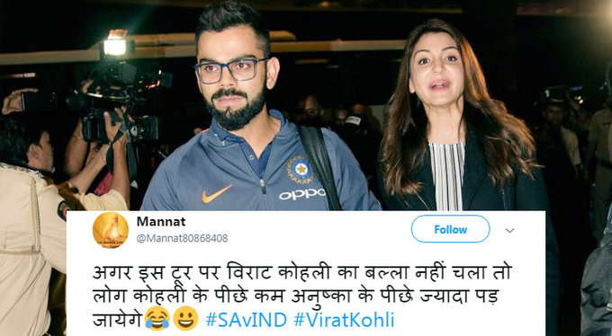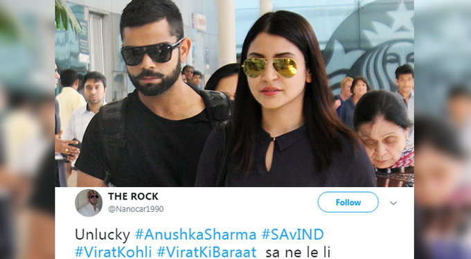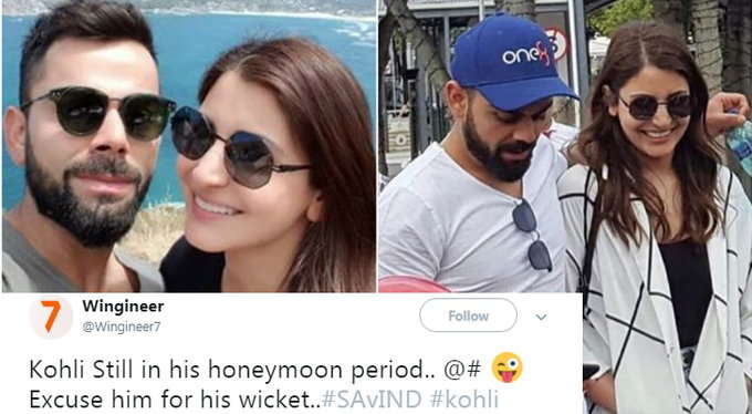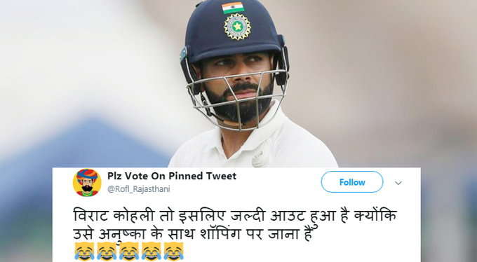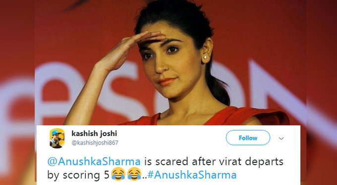 ਫੈਂਸ ਟਵੀਟ ਕੀਤਾ ਕਿ ਵਿਰਾਟ ਨੂੰ ਵਾਇਫ ਦੇ ਨਾਲ ਸ਼ਾਪਿੰਗ ਤੇ ਜਾਣਾ ਹੋਵੇਗਾ, ਇਸ ਲਈ ਉਹ ਜ਼ਲਦੀ ਆਉਟ ਹੋ ਗਏ। ਉਥੇ ਹੀ ਕੁਝ ਲੋਕਾਂ ਨੇ ਅਨੁਸ਼ਕਾ ਨੂੰ ਵਿਰਾਟ ਲਈ ਬੈਡਲਕ ਦੱਸਿਆ।